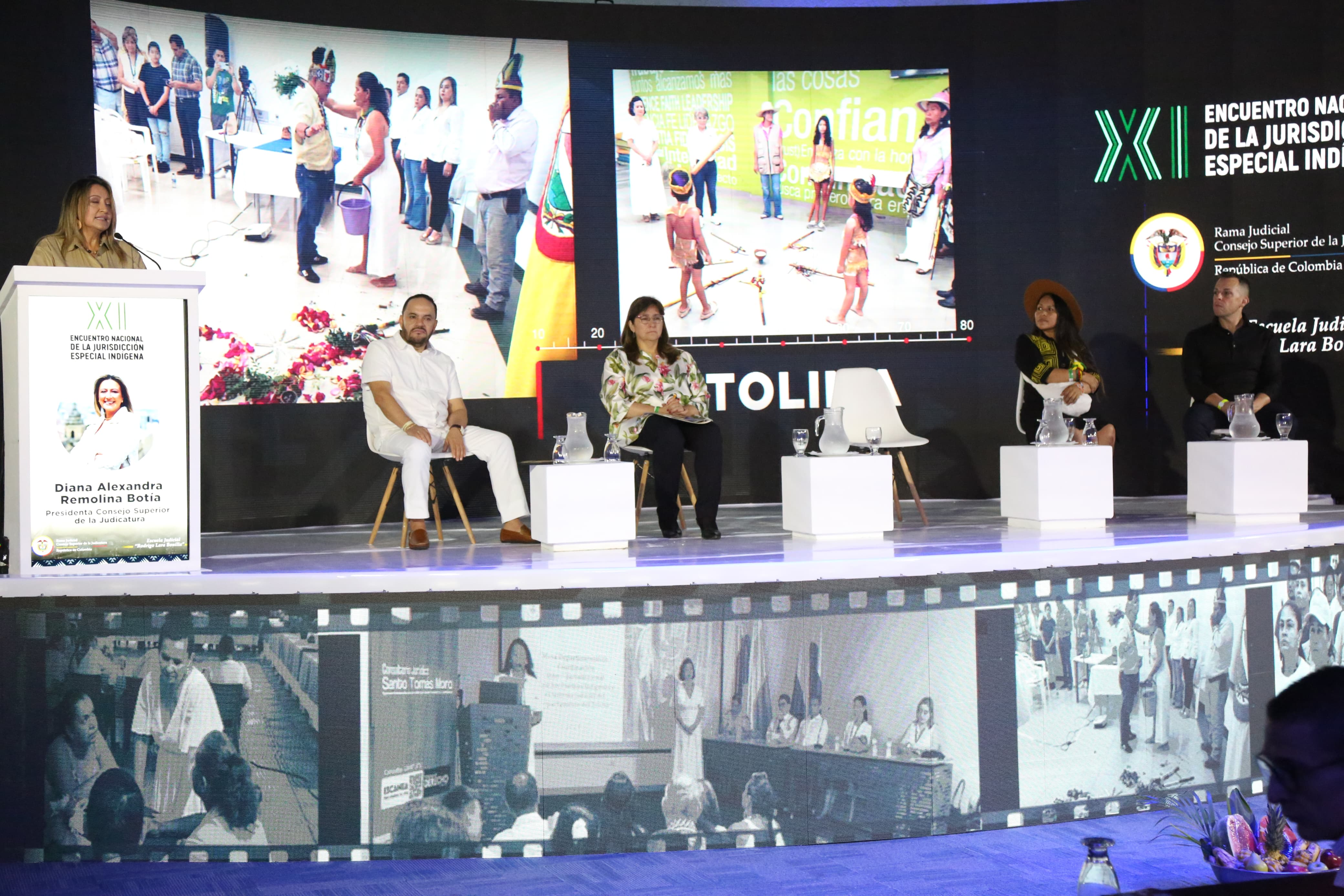 Por su parte la presidenta del Consejo Superior de la Judicatura, Diana Remolina Botía, enfatizó el compromiso que tiene la Corporación con el apoyo del Ministerio de Justicia para sacar adelante el proyecto de ley de coordinación entre la Jurisdicción Especial Indígena y el Sistema Judicial Nacional.