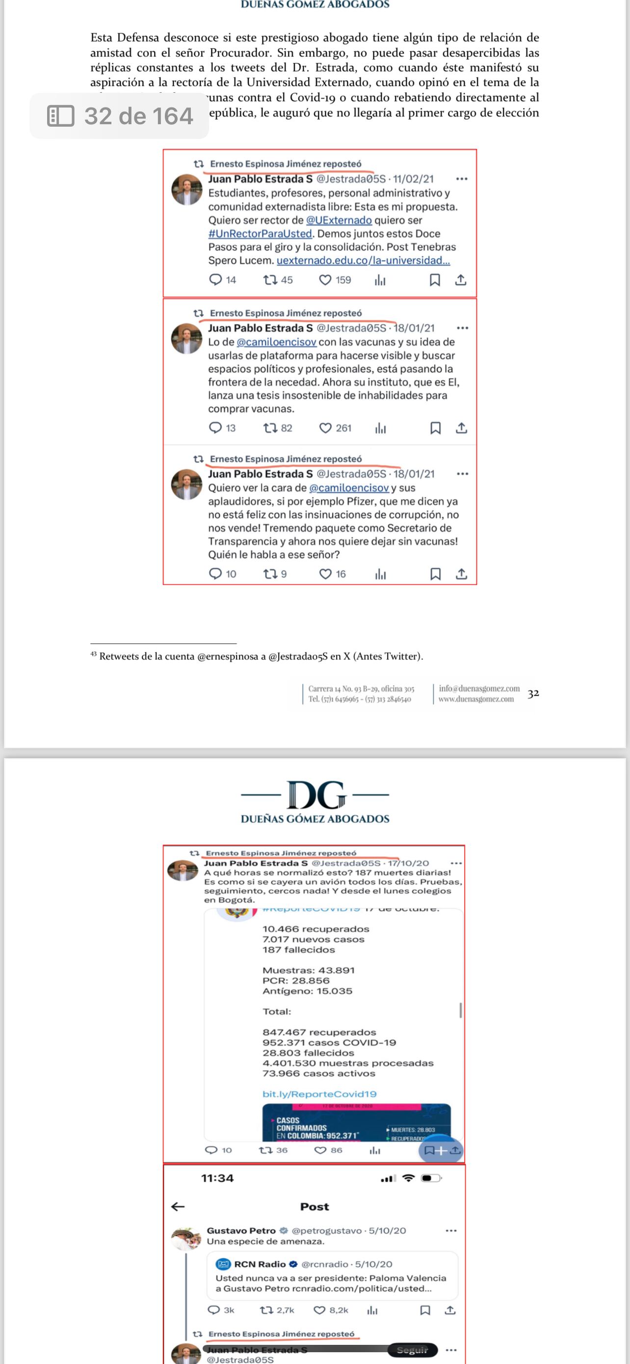 Además, la defensa señaló que Espinosa eliminó su cuenta de X (antes Twitter) tras ser recusado, lo cual, según ellos, refuerza las dudas sobre su neutralidad.