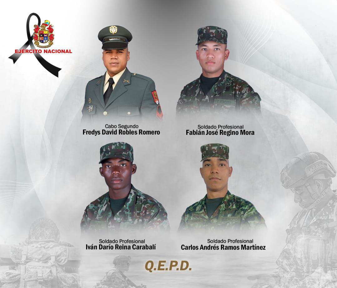 El Ejército identificó a cuatro de los cinco militares asesinados por el ELN: