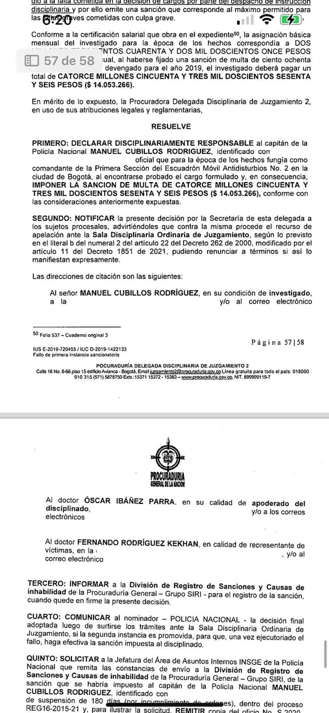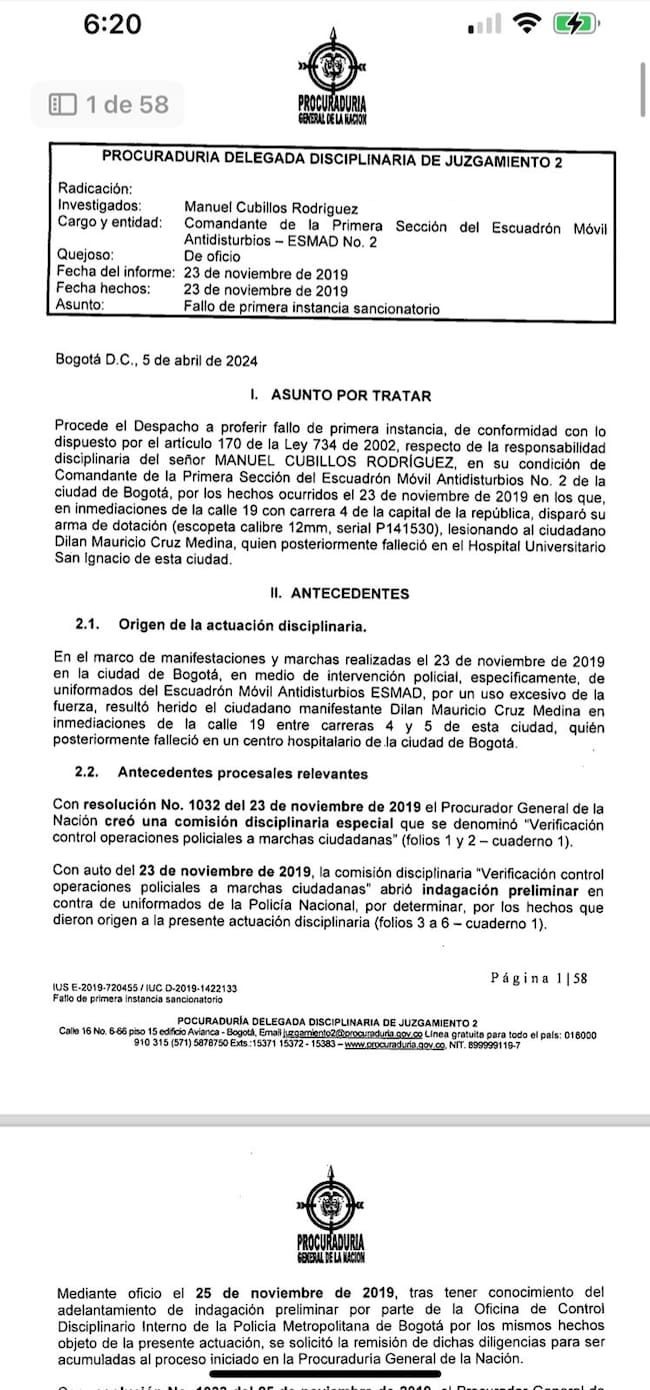 Desde el día de los hechos, según el fallo, la Procuraduría creó una comisión especial para investigar las operaciones policiales en las marchas ciudadanas.