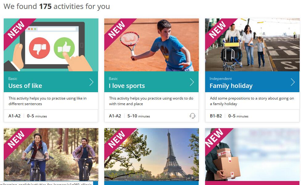 - Lo único que debe hacer es ingresar al siguiente enlace: https://www.cambridgeenglish.org/learning-english/activities-for-learners/.