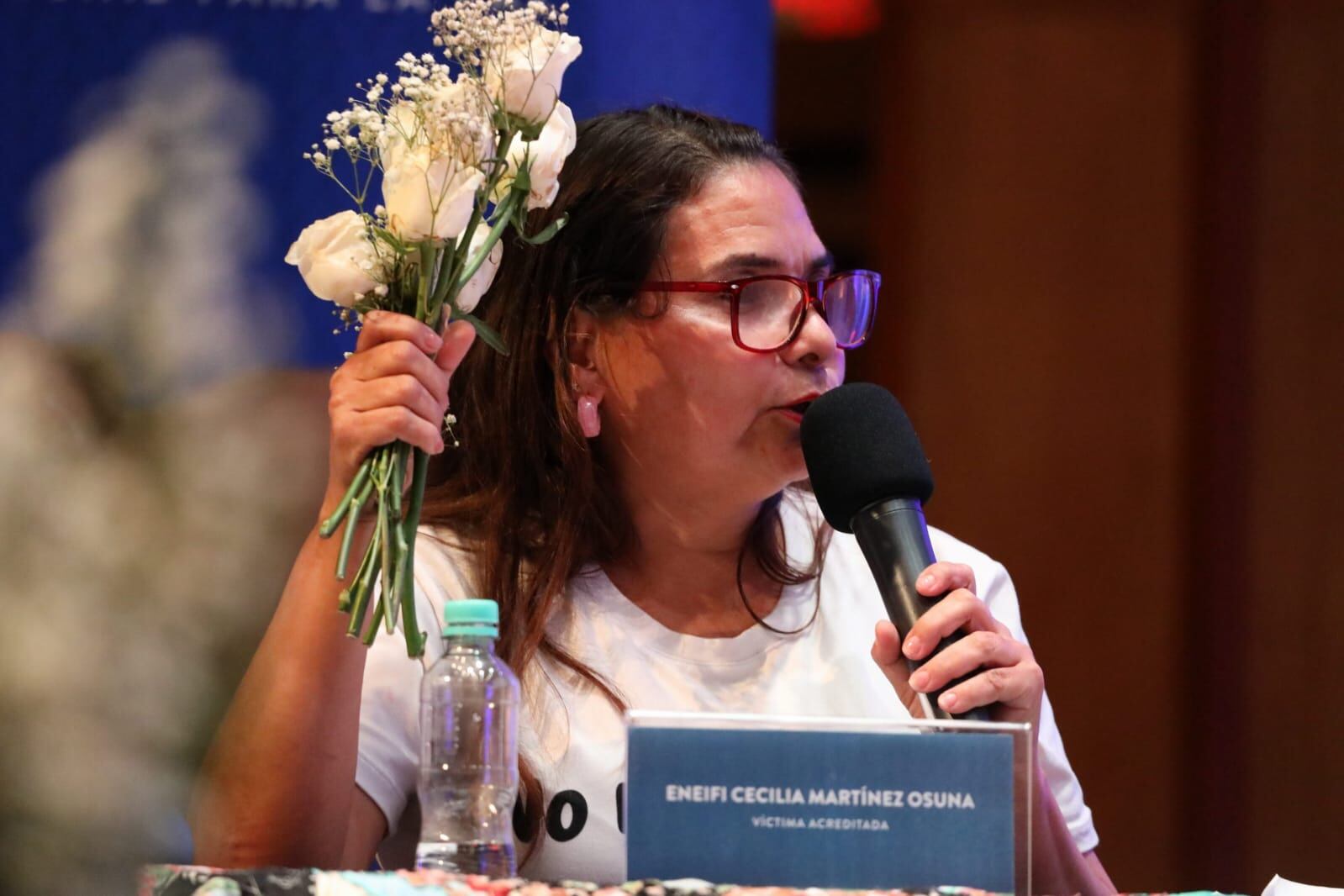 “Cuando llegó la noche fui víctima de muchos abusos, abuso psicológico, abuso físico, tortura psicológica, tortura física y violencia sexual, todo esto ocurría mientras estos hombres obligaban a Hugo Alberto a que vieran todo lo que hacían contra mí y contra mi cuerpo”, dijo de forma estremecedora ante el auditorio.