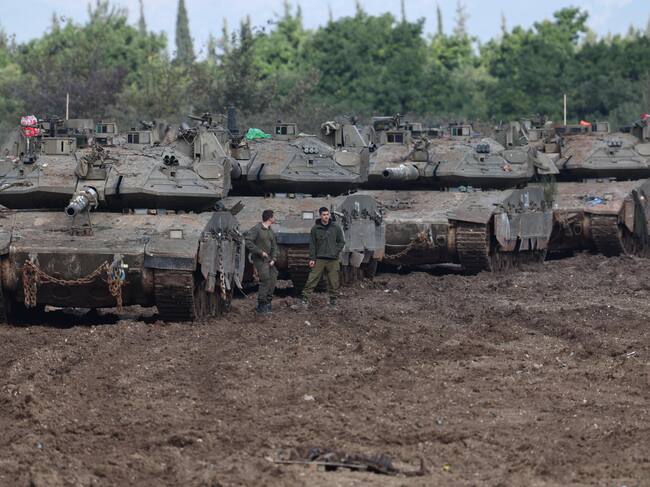 Tanques israelíes estacionados en un campo de regreso a Israel tras el alto el fuego con Hezbolá. Foto: EFE/ Atef Safadi / ATEF SAFADI (EFE)
