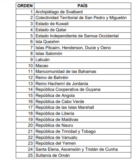 Gobierno actualizó la lista de paraísos fiscales: estos son