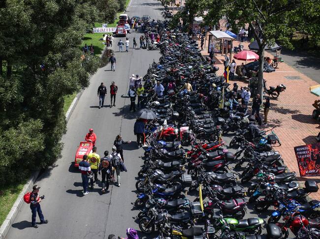 Bogotá. Marzo 3 de 2024. Cientos de motociclistas se reunieron en algunos puntos de la ciudad para manifestarse en contra del estigma debido a los casos de inseguridad. (Colprensa - John Paz) / John Paz