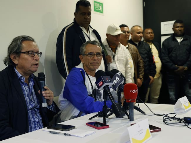 Exintegrante de las Farc 'Walter Mendoza' y el jefe de la delegación del Gobierno Nacional, Armando Novoa García. Foto: EFE/ Mauricio Dueñas Castañeda / Mauricio Dueñas Castañeda (EFE)