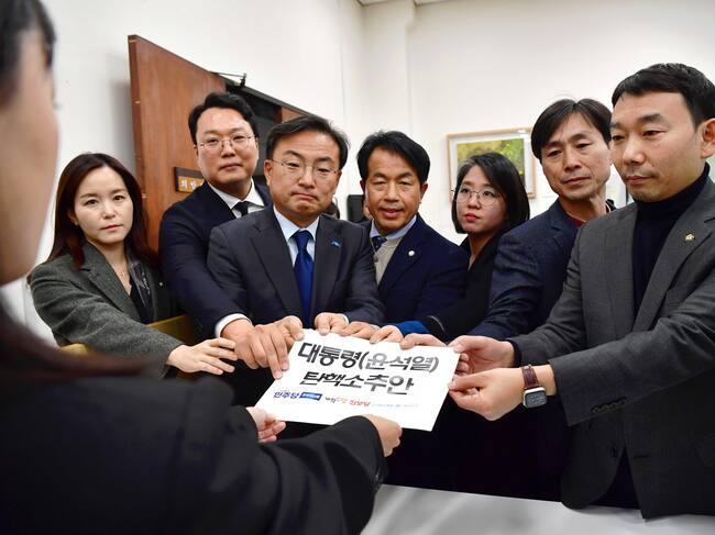 Las seis formaciones opositoras iniciaron así el proceso parlamentario que podría desembocar en la suspensión del ejercicio del poder del mandatario, cuyo partido gobierna en minoría, y con su figura sometida a un enorme desgaste tras recurrir a la ley marcial para proteger el “orden constitucional” contra actividades “antiestatales” y “fuerzas pronorcoreanas”, según dijo.