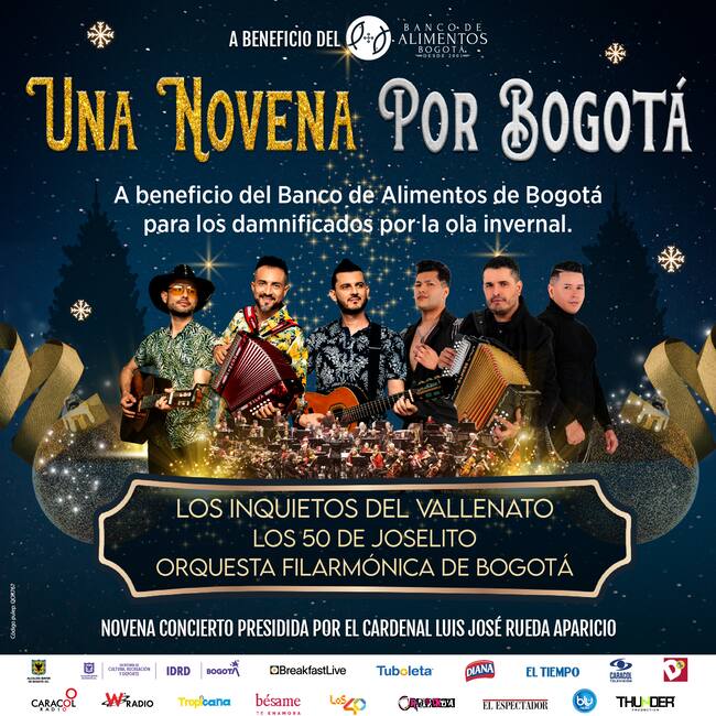 De esta manera, esta Novena contará con la música de Los 50 de Joselito, Los Inquietos del Vallenato y la Orquesta Filarmónica de Bogotá, quienes apoyarán esta experiencia única, llena de solidaridad, música y unión familiar.