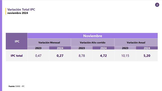 Inflación siguió bajando en noviembre y se ubicó en 5,20%, en su medición anual: DANE