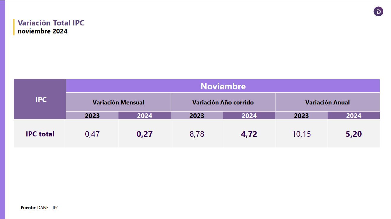 Inflación siguió bajando en noviembre y se ubicó en 5,20%, en su medición anual: DANE
