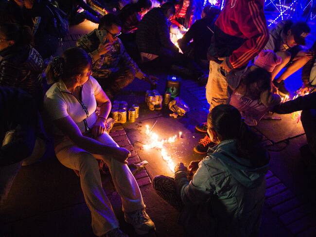 Bogotá. Diciembre 07 de 2024. Familias se reúnen en la Plaza de Bolívar para celebrar la tradición de la noche velitas. (Colprensa - Catalina Olaya)