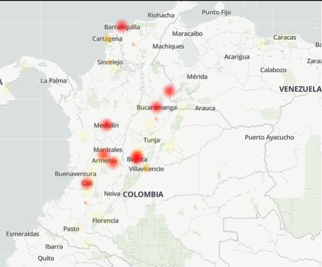 Este mapa de calor muestra dónde se concentran los informes de problemas enviados por los usuarios durante las últimas 24 horas.