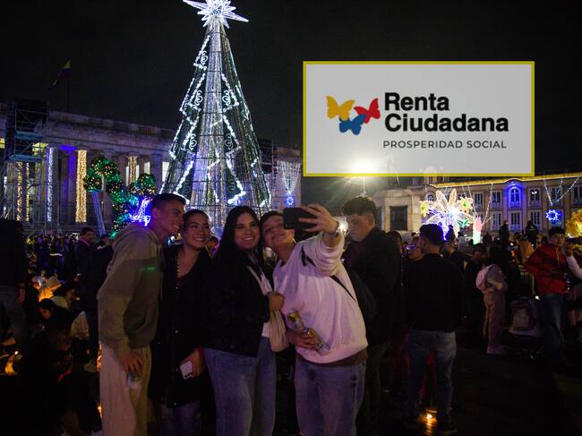 Alumbrado navideño en la Plaza de Bolívar (Colprensa - Catalina Olaya) y el logo del programa social Renta Ciudadana