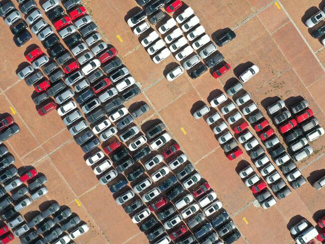 Se ven coches en venta en un parqueadero cerca de Bogotá el 24 de abril de 2020. Las ventas de autos en Colombia se desplomaron durante marzo debido a la pandemia de Covid-19. (Daniel Munoz/VIEWpress via Getty Images) / VIEW press