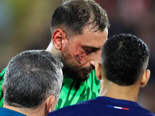 Este jueves está previsto que Donnarumma, que abandonó el campo por su propio pie, se someta a “exámenes médicos” para evaluar el alcance del golpe y de las visibles heridas en el rostro.