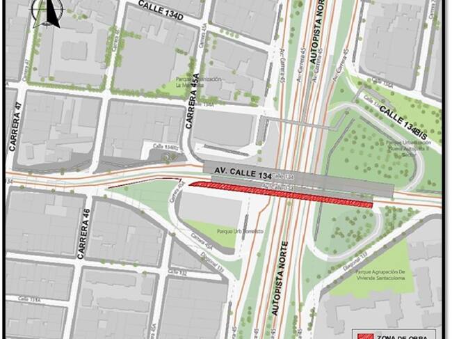 A partir del 20 de diciembre y durante aproximadamente un mes, el puente vehicular de la avenida calle 134 con Autopista Norte de Bogotá, en sentido occidente - oriente, permanecerá cerrado en horario nocturno.