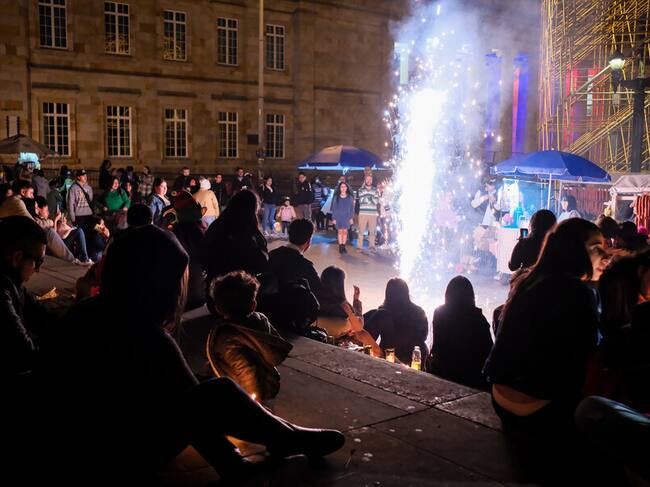 Bogotá. Diciembre 7 de 2023. Cientos de Bogotanos salieron a la Plaza de Bolívar para celebrar la noche de Velitas. (Colprensa - Mariano Vimos)