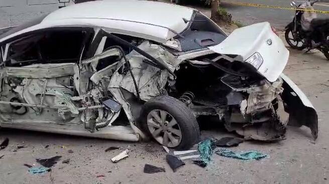 Un hecho violento llamó la atención el pasado sábado 28 de diciembre en Cali, cuando un vehículo tipo camioneta chocó con tres automóviles particulares, un taxi y una motocicleta en un aparatoso accidente. El conductor, quien recibió varios impactos de bala, murió cuando era trasladado a un centro asistencial.