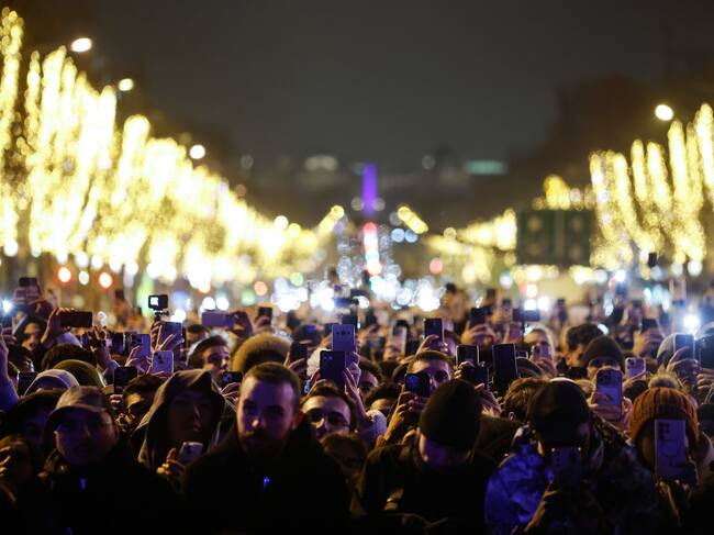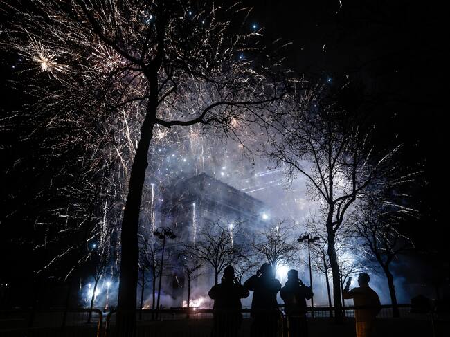 Paris (France), 31/12/2024.- Thousands of spectators stand on the Champs Elysee as fireworks illuminate the sky over the The Arc of Triomphe during the New Year's celebrations in Paris, France, 01 January 2025. (Francia) EFE/EPA/YOAN VALAT / YOAN VALAT