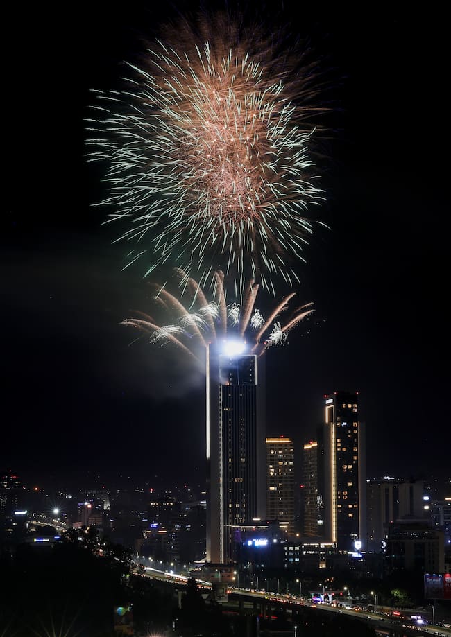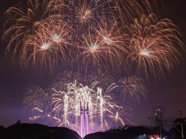 Quezon City (Philippines), 01/01/2025.- A fireworks display marks the New Year above the Memorial Circle of Quezon City, Metro Manila, Philippines, 01 January 2025. Revelers in the Philippines welcomed the new year, with many opting to come out of their homes to watch fireworks displays supervised by local government units. (Filipinas) EFE/EPA/ROLEX DELA PENA / ROLEX DELA PENA
