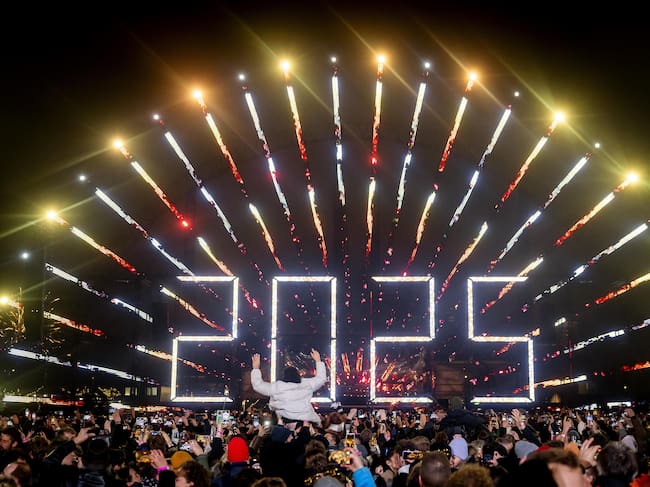 Amsterdam (Netherlands), 01/01/2025.- Partygoers usher in the New Year at Museumplein during a New Year's Eve celebration event in Amsterdam, Netherlands, 01 January 2025. (Países Bajos; Holanda) EFE/EPA/KOEN VAN WEEL / KOEN VAN WEEL