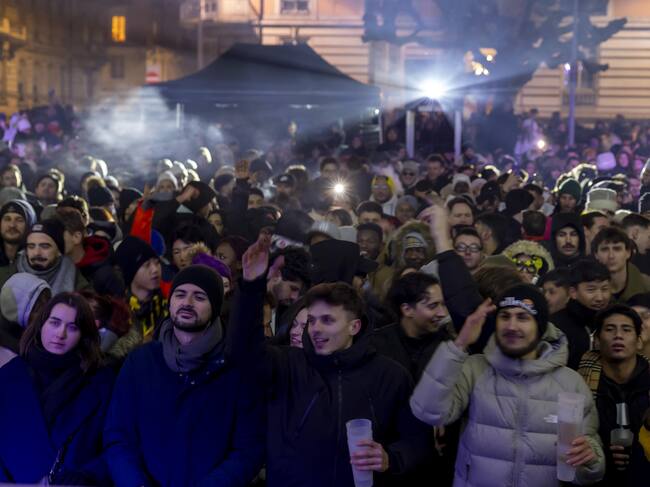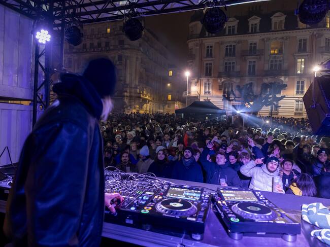 Geneva (Switzerland Schweiz Suisse), 01/01/2025.- People gather at a stage for listen to music during New Year celebrations in Geneva, Switzerland, 01 January 2025. (Suiza, Ginebra) EFE/EPA/SALVATORE DI NOLFI / SALVATORE DI NOLFI