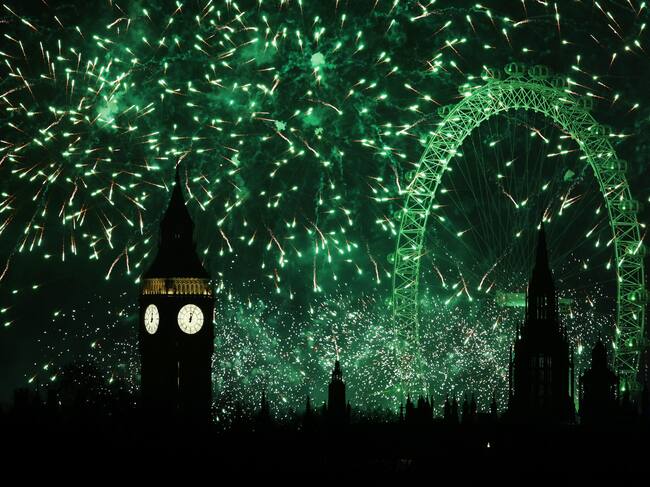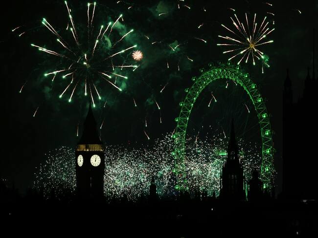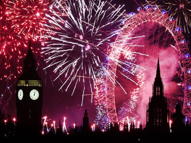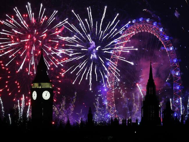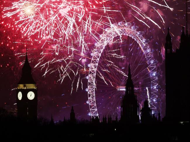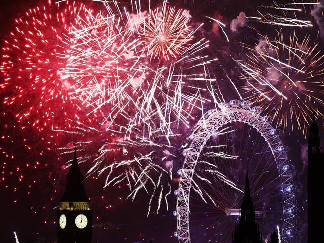 London (United Kingdom), 01/01/2025.- A fireworks display erupts over London during New Year's celebrations in London, Britain, 01 January 2025. London'Äôs New Years Eve fireworks display went ahead despite New Year celebrations being cancelled in Edinburgh and Blackpool due to strong winds. (Reino Unido, Edimburgo, Londres) EFE/EPA/ANDY RAIN / ANDY RAIN (EFE)