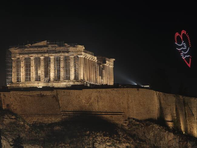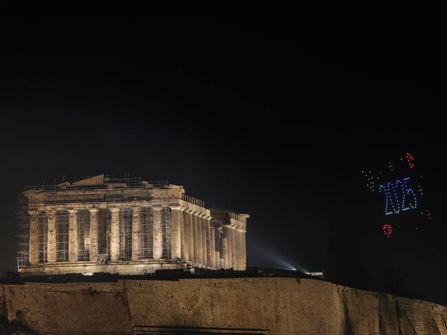Athens (Poland), 01/01/2025.- A drone show illuminates the sky over the Parthenon on Acropolis Hill during New Year celebrations in Athens, Greece, 01 January 2025. (Grecia, Atenas) EFE/EPA/GEORGE VITSARAS / GEORGE VITSARAS
