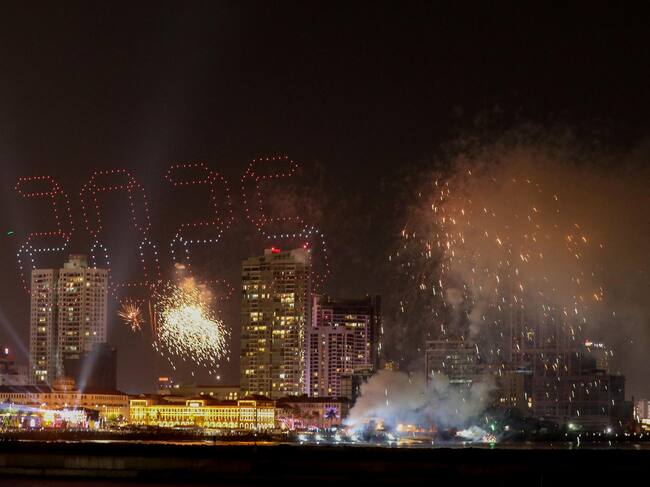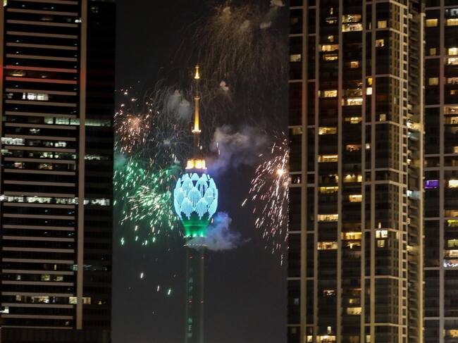 Colombo (Sri Lanka), 31/12/2024.- Fireworks and light effects illuminate the night sky during the 2025 new year's celebrations in capital Colombo, Sri Lanka, 31 December 2024. EFE/EPA/CHAMILA KARUNARATHNE / CHAMILA KARUNARATHNE