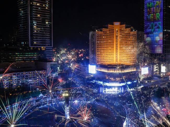 Jakarta (Indonesia), 31/12/2024.- A fireworks display marks the New Year above the Bundaran Hotel Indonesia roundabout in Jakarta, Indonesia, 31 December 2024. EFE/EPA/MAST IRHAM / MAST IRHAM