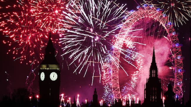 London (United Kingdom), 01/01/2025.- A fireworks display erupts over London during New Year's celebrations in London, Britain, 01 January 2025. London'Äôs New Years Eve fireworks display went ahead despite New Year celebrations being cancelled in Edinburgh and Blackpool due to strong winds. (Reino Unido, Edimburgo, Londres) EFE/EPA/ANDY RAIN / ANDY RAIN