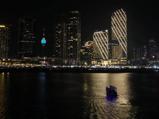 Colombo (Sri Lanka), 31/12/2024.- Fireworks and light effects illuminate the night sky during the 2025 new year's celebrations in capital Colombo, Sri Lanka, 01 January 2025. EFE/EPA/CHAMILA KARUNARATHNE / CHAMILA KARUNARATHNE