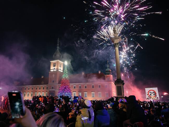 Warsaw (Poland), 01/01/2025.- Residents of the capital and tourists celebrate the arrival of the New Year at Castle Square in Warsaw, Poland, 01 January 2025. (Polonia, Varsovia) EFE/EPA/Rafal Guz POLAND OUT / Rafal Guz