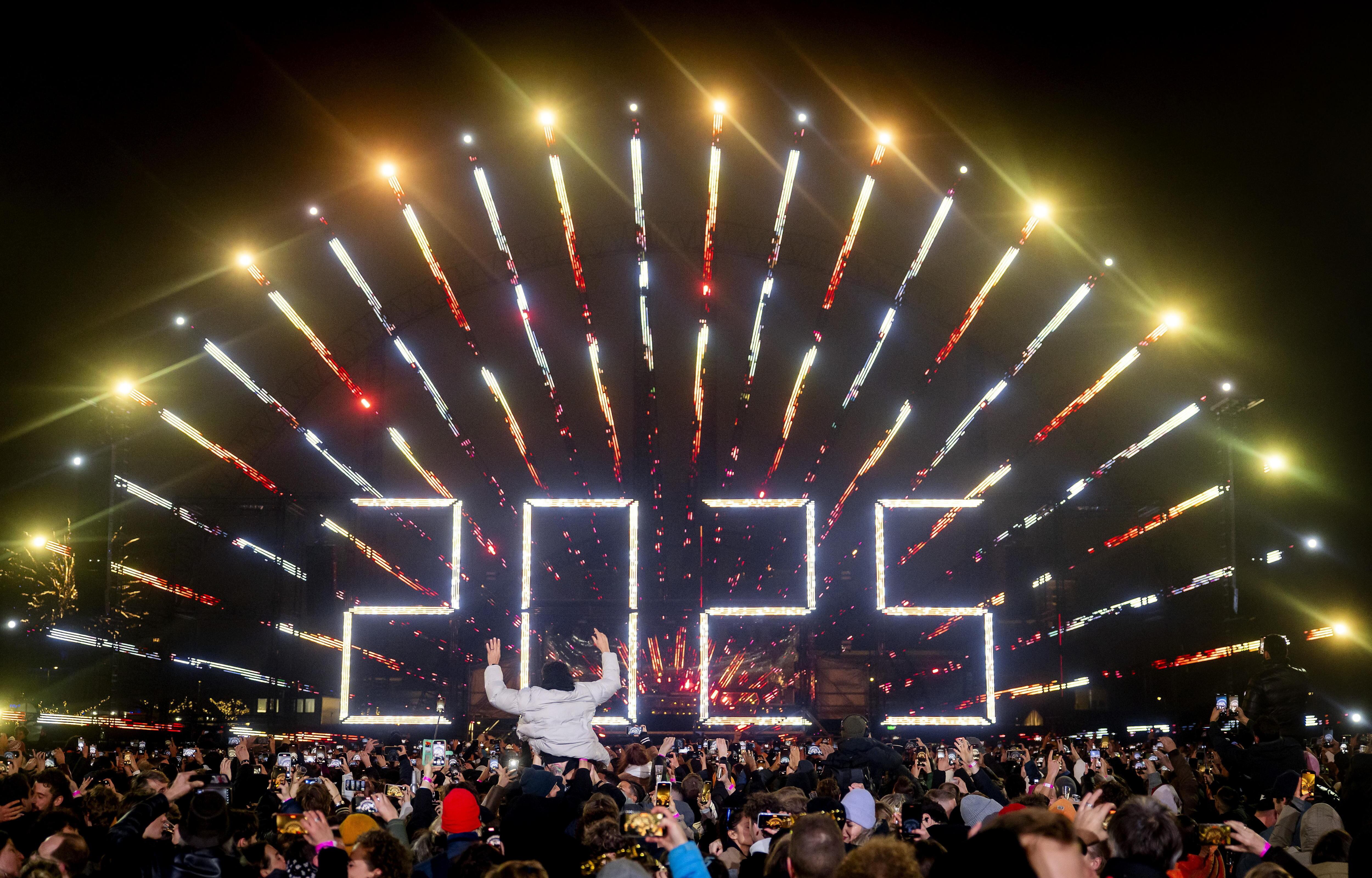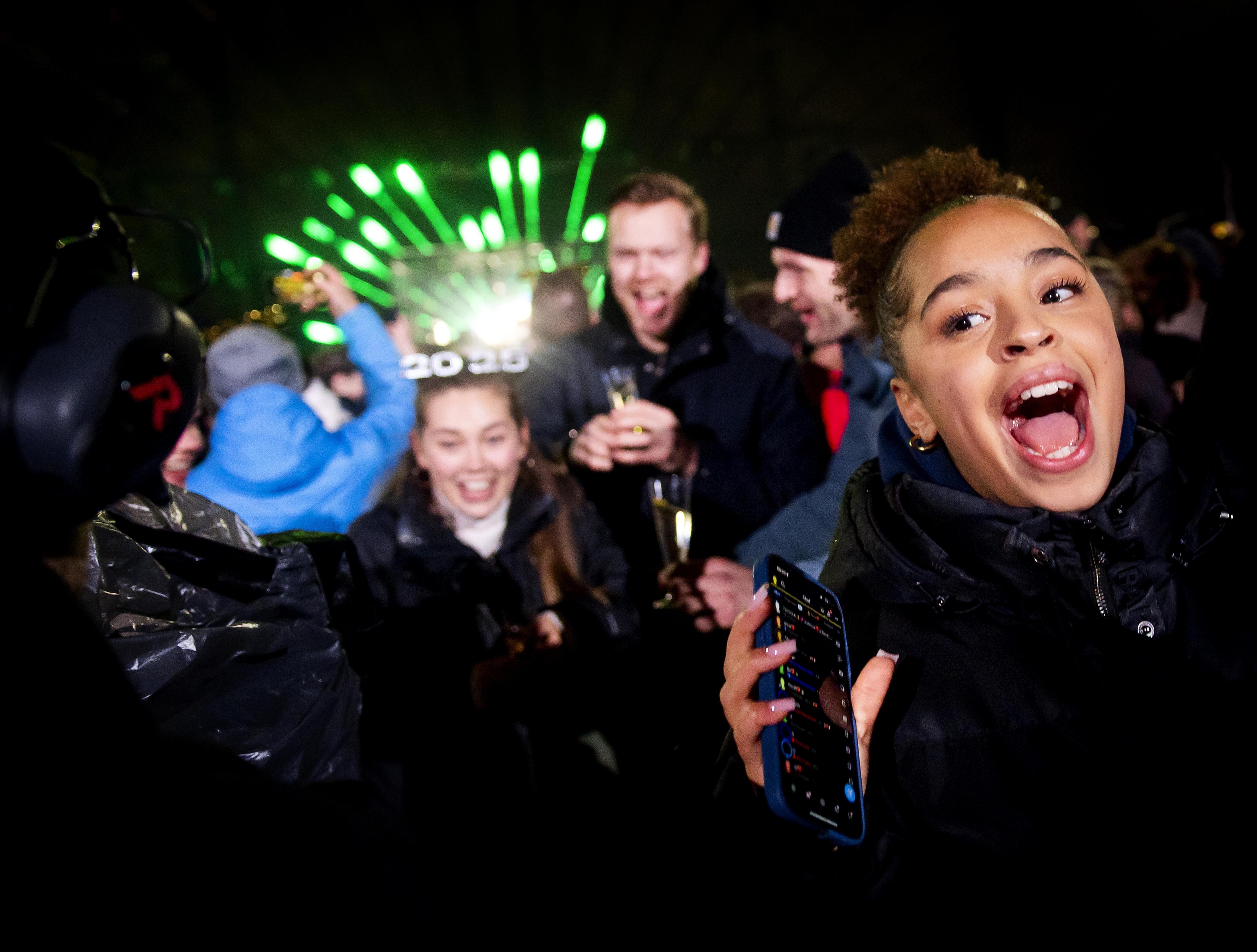 Amsterdam (Netherlands), 01/01/2025.- Partygoers usher in the New Year at Museumplein during a New Year's Eve celebration event in Amsterdam, Netherlands, 01 January 2025. (Países Bajos; Holanda) EFE/EPA/KOEN VAN WEEL / KOEN VAN WEEL
