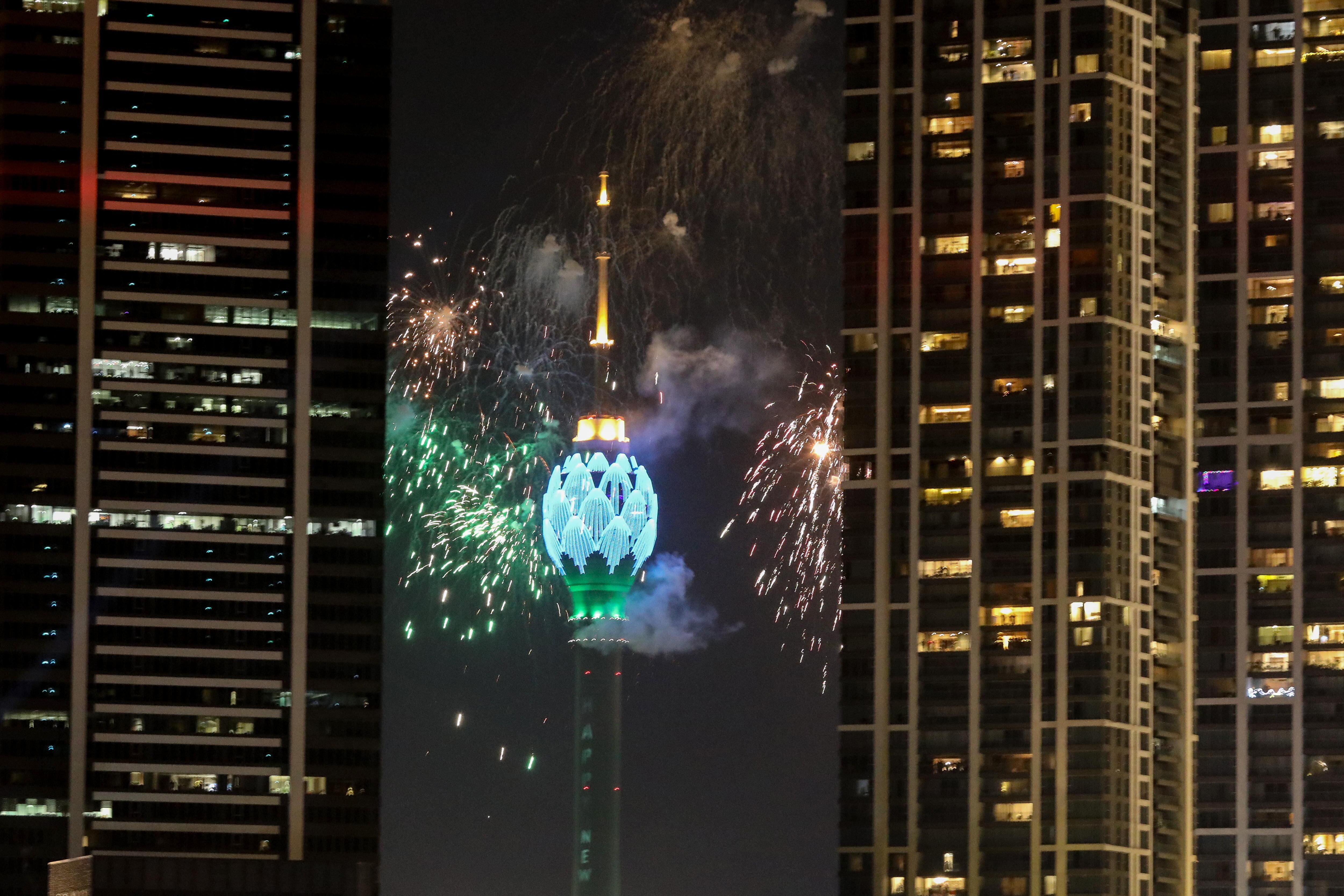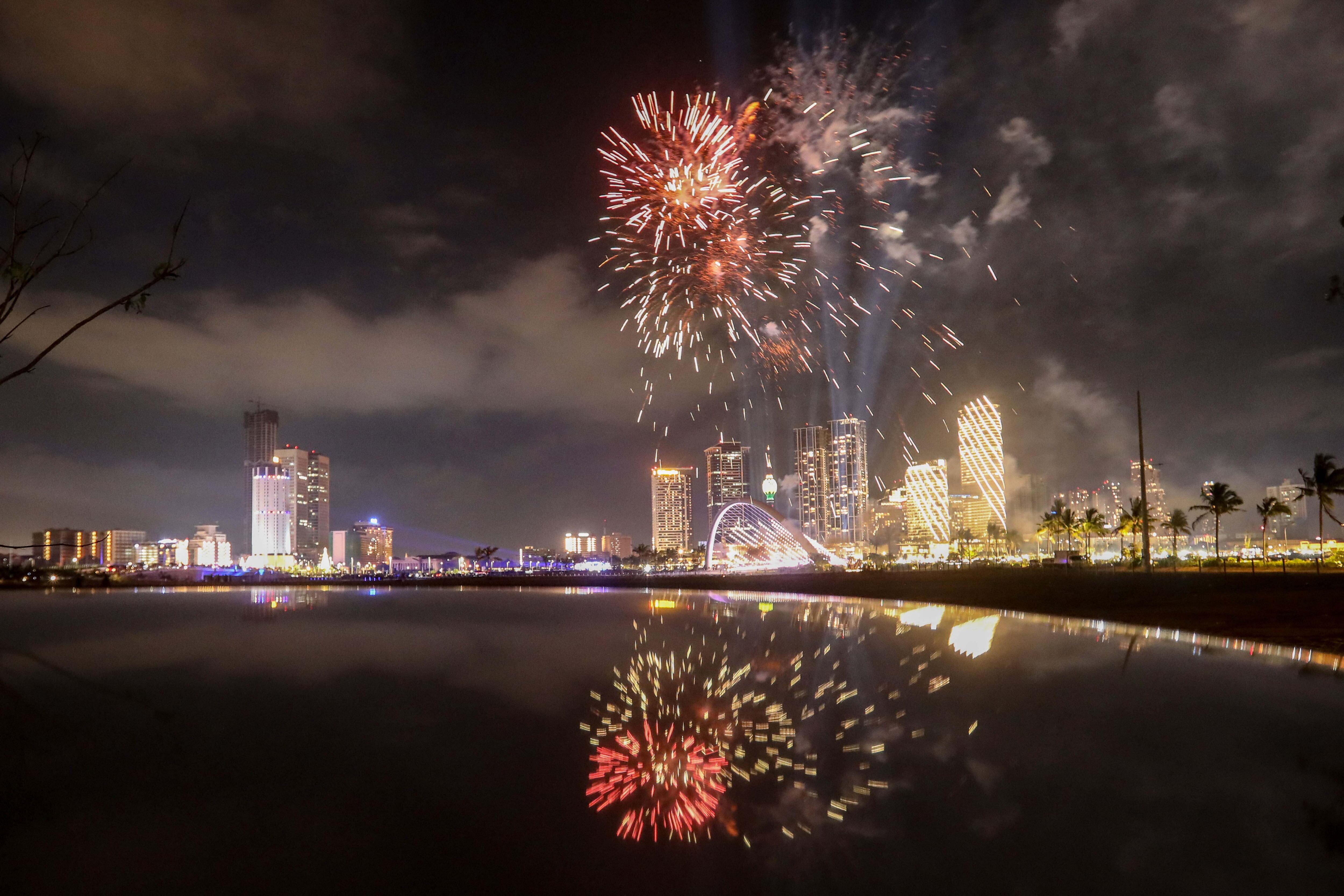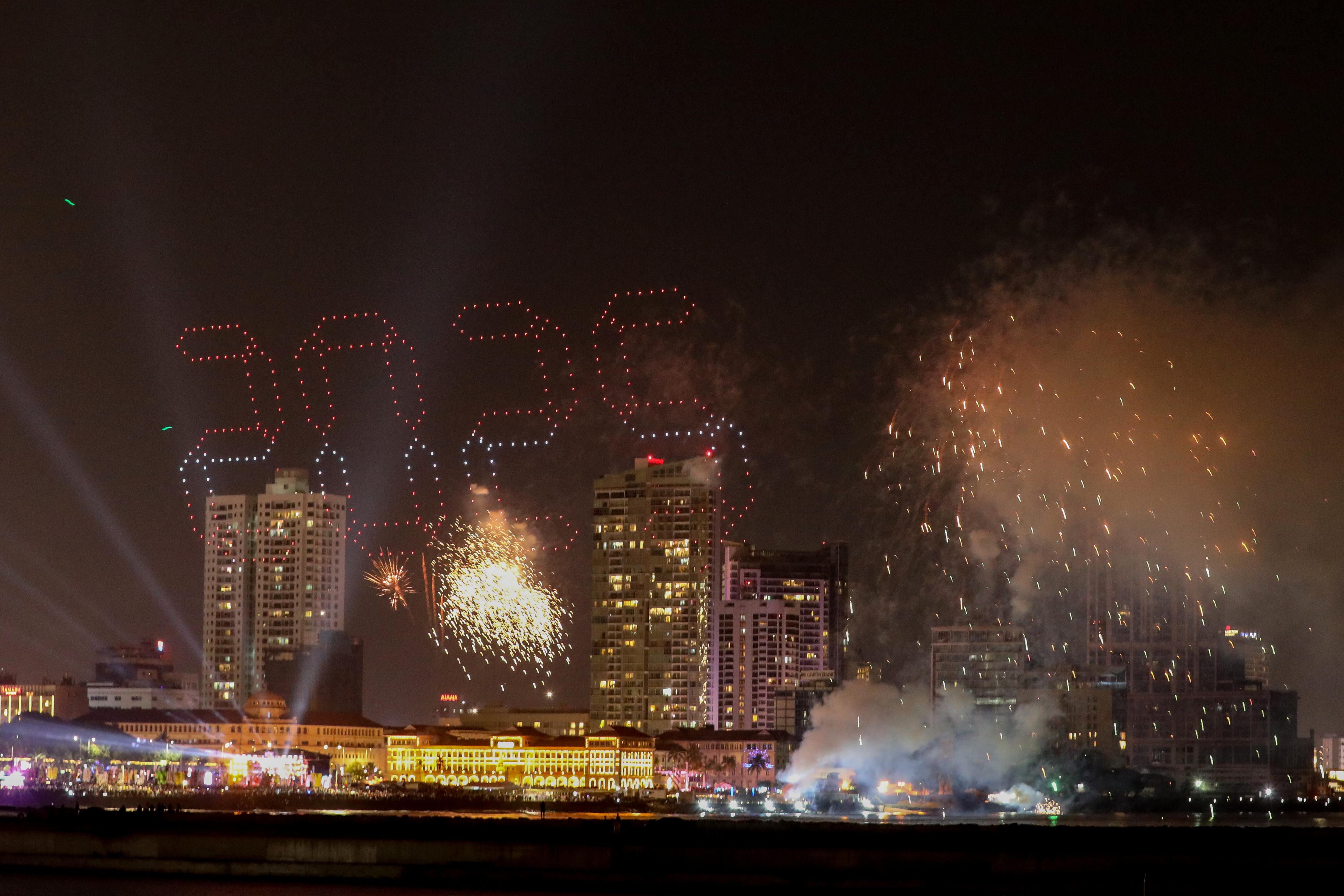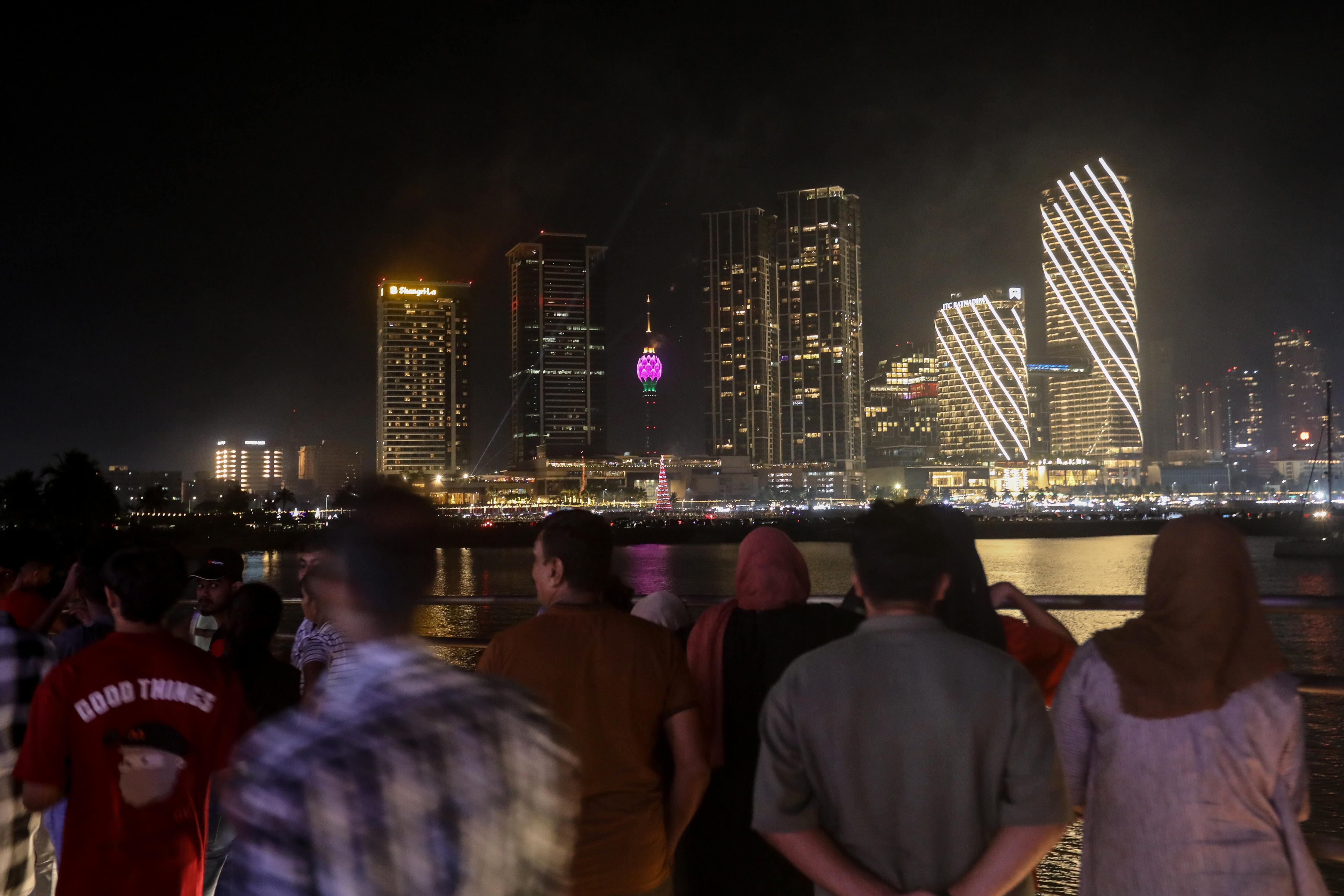 Colombo (Sri Lanka), 31/12/2024.- Fireworks and light effects illuminate the night sky during the 2025 new year's celebrations in capital Colombo, Sri Lanka, 31 December 2024. EFE/EPA/CHAMILA KARUNARATHNE / CHAMILA KARUNARATHNE