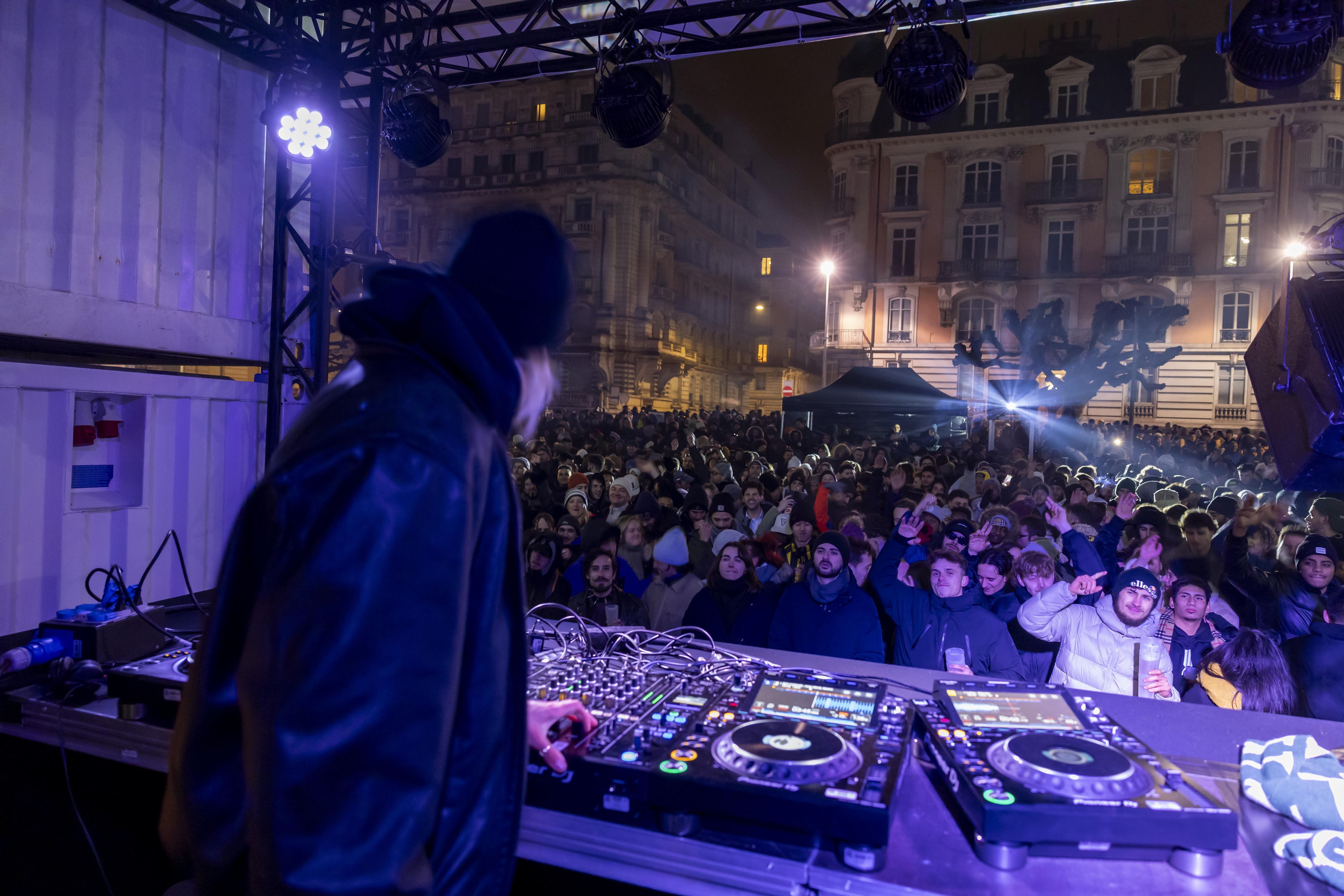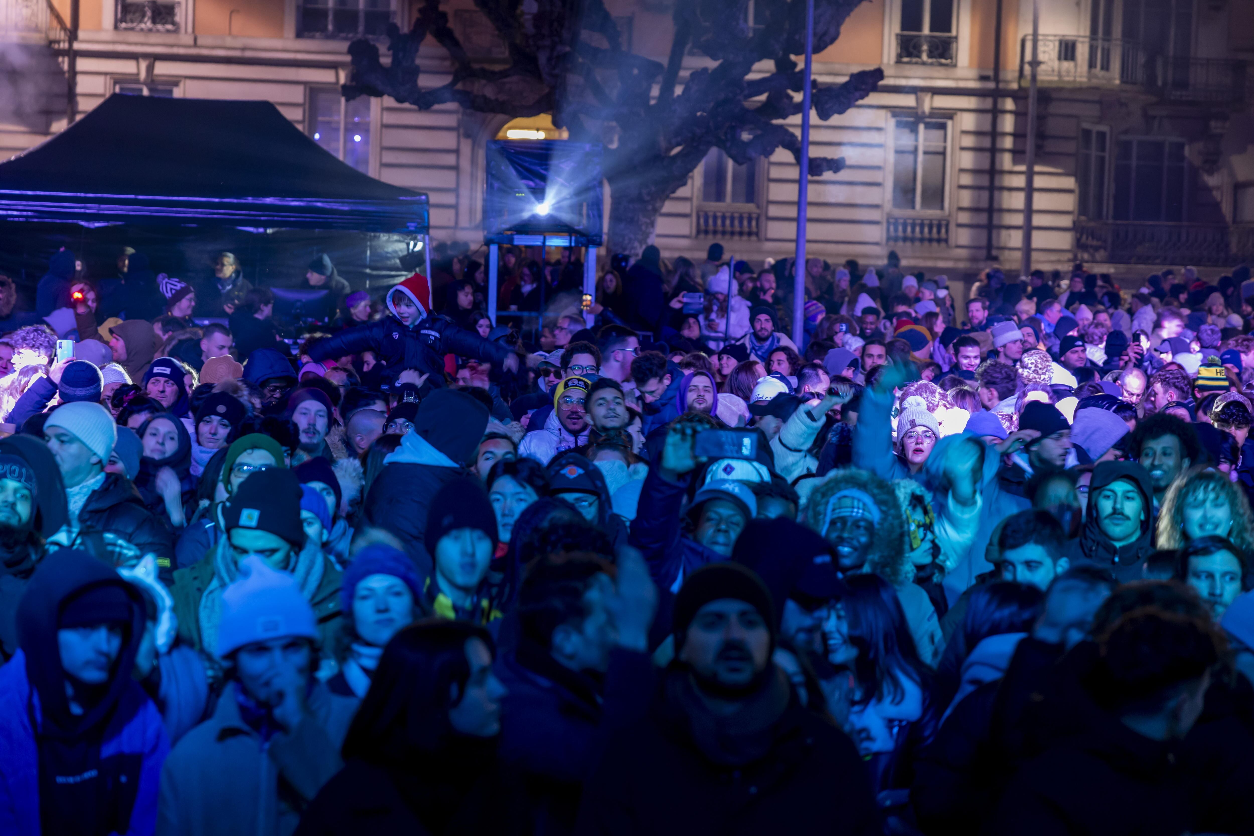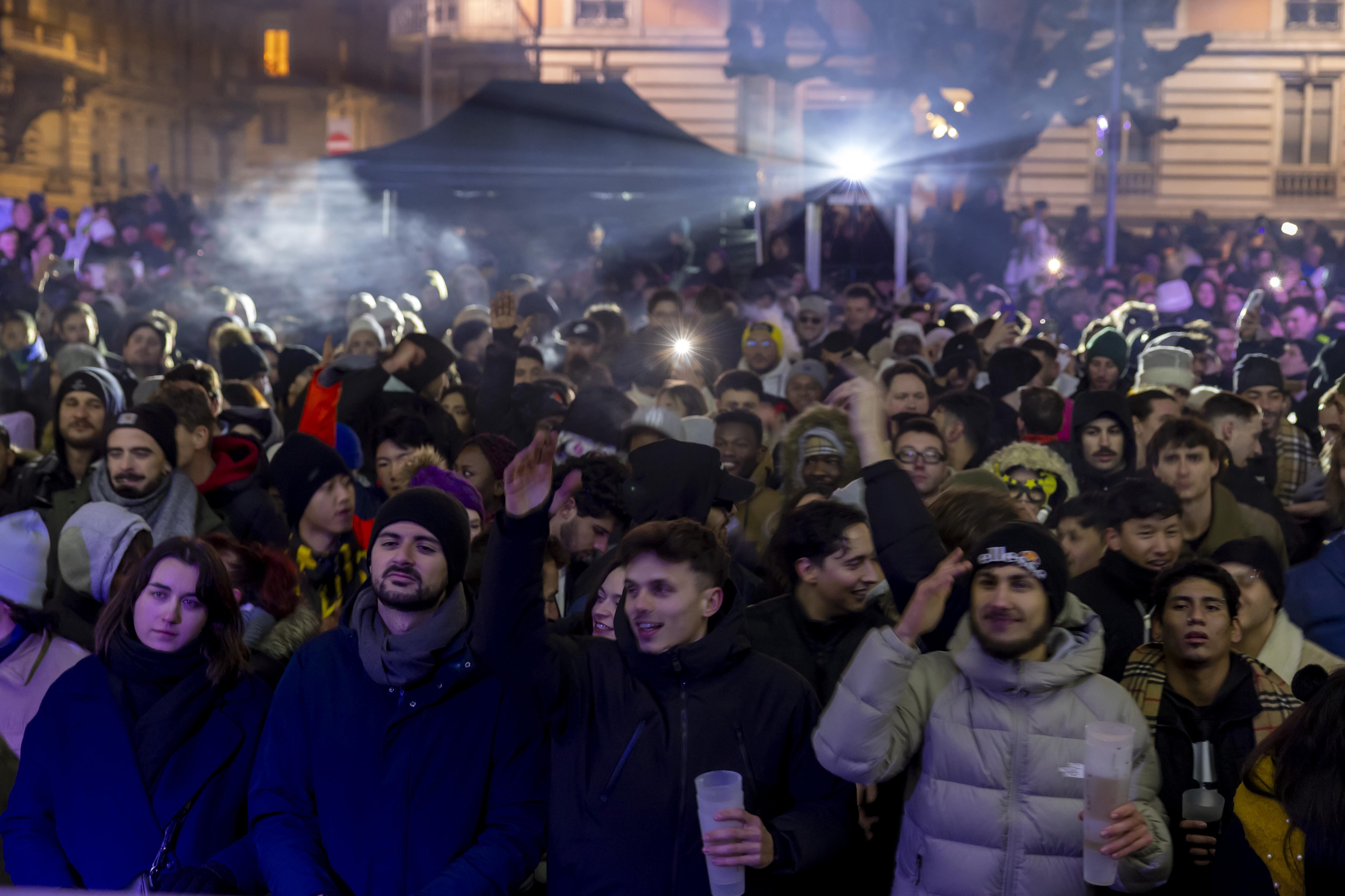 Geneva (Switzerland Schweiz Suisse), 01/01/2025.- People gather at a stage for listen to music during New Year celebrations in Geneva, Switzerland, 01 January 2025. (Suiza, Ginebra) EFE/EPA/SALVATORE DI NOLFI / SALVATORE DI NOLFI