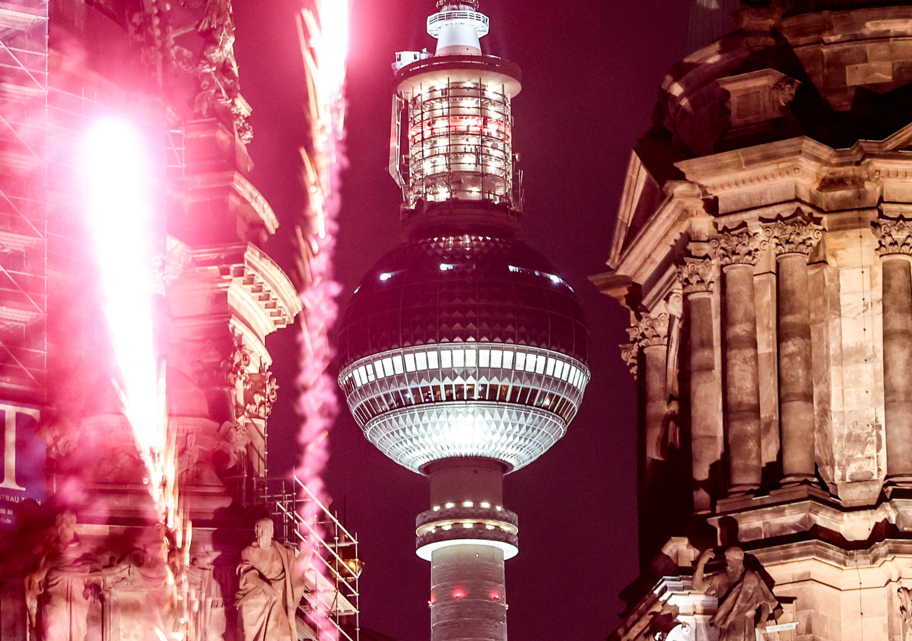 Berlin (Germany), 31/12/2024.- Fireworks are set off next to Berlin TV Tower and Berliner Dom during New Year's Eve celebrations in Berlin, Germany, 31 December 2024. (Alemania) EFE/EPA/FILIP SINGER / FILIP SINGER