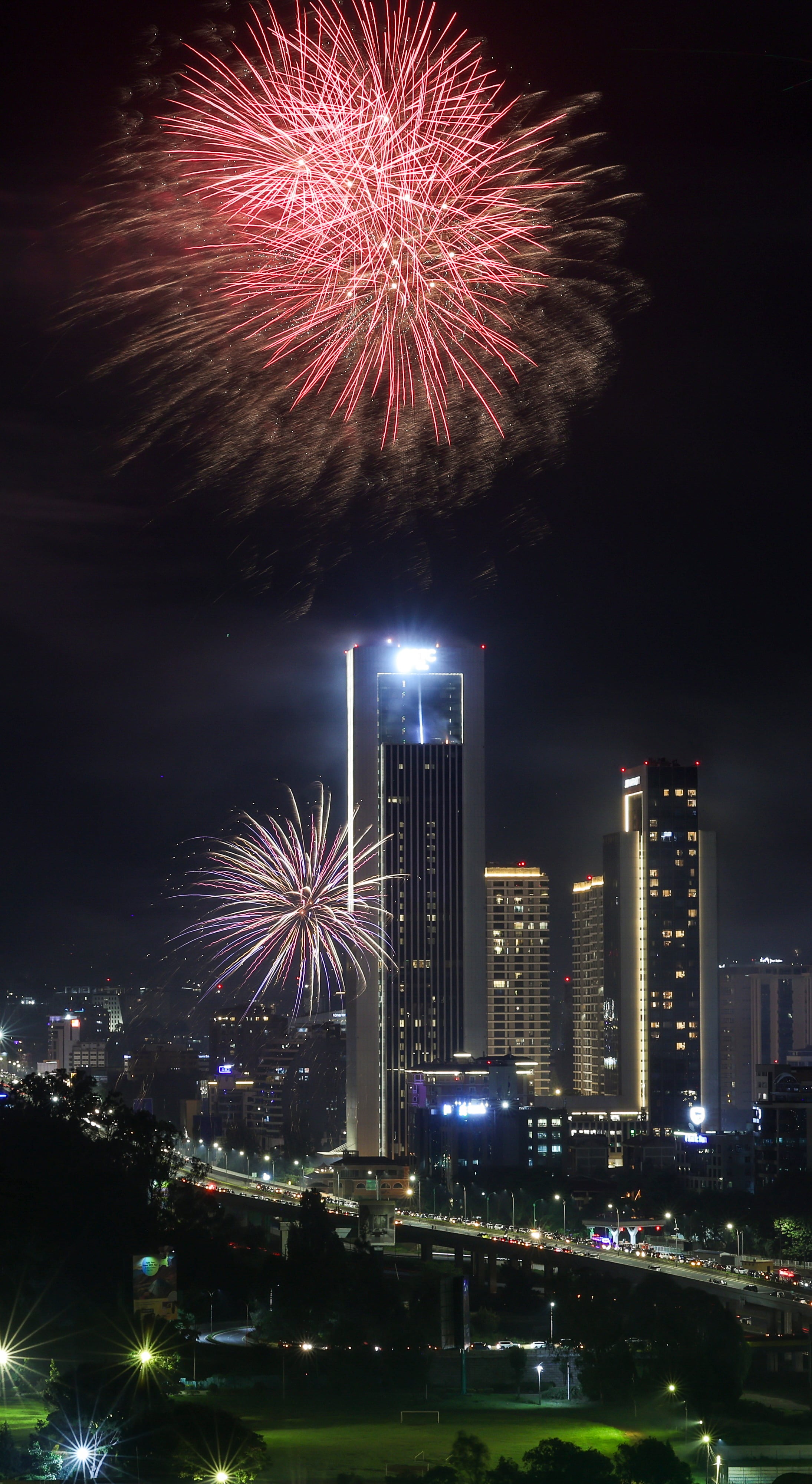Nairobi (Kenya), 31/12/2024.- Fireworks illuminate the sky over GTC Tower, the tallest building in Nairobi, during New Year's Eve celebrations in Nairobi, Kenya, 01 January 2025. (Kenia) EFE/EPA/DANIEL IRUNGU / DANIEL IRUNGU