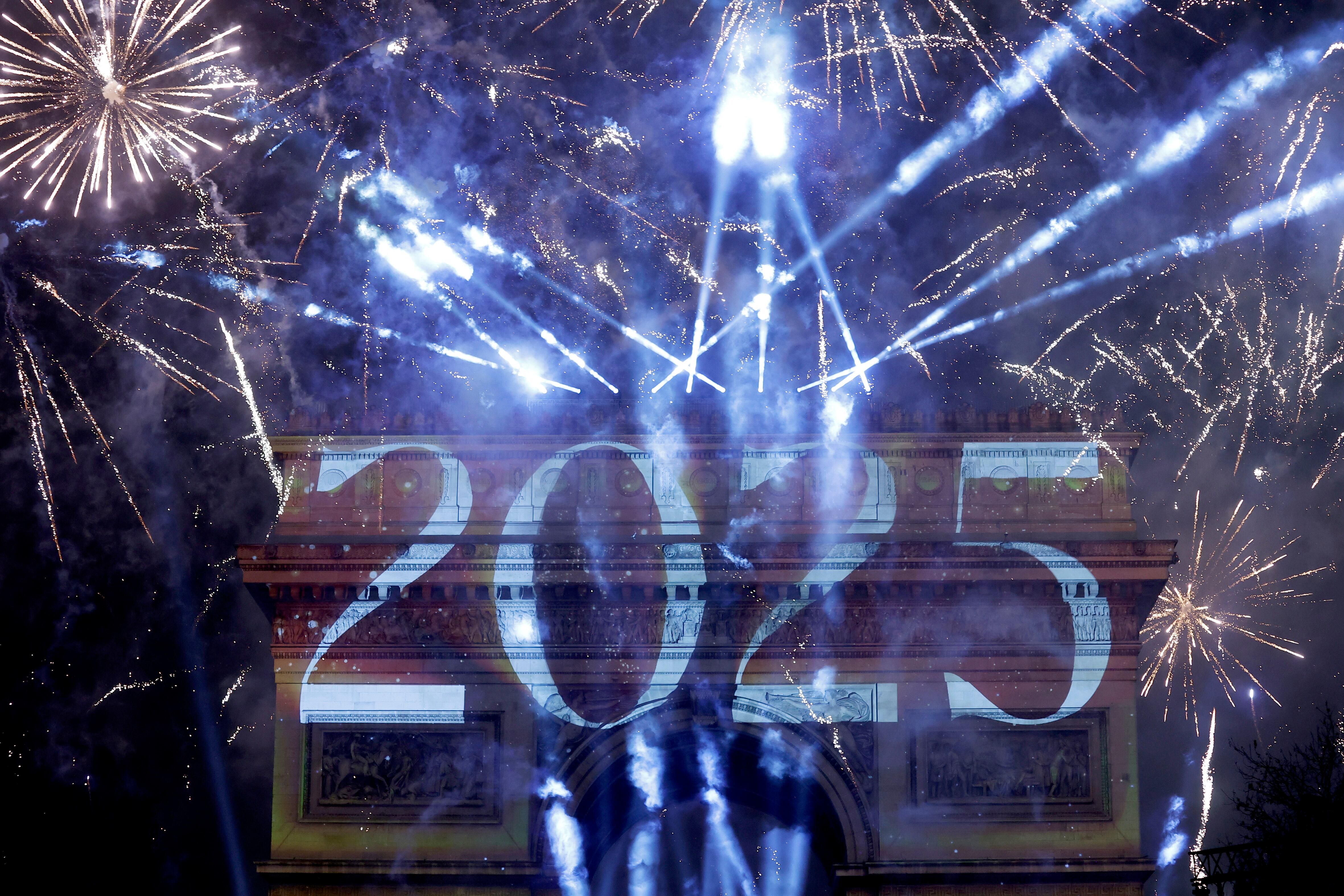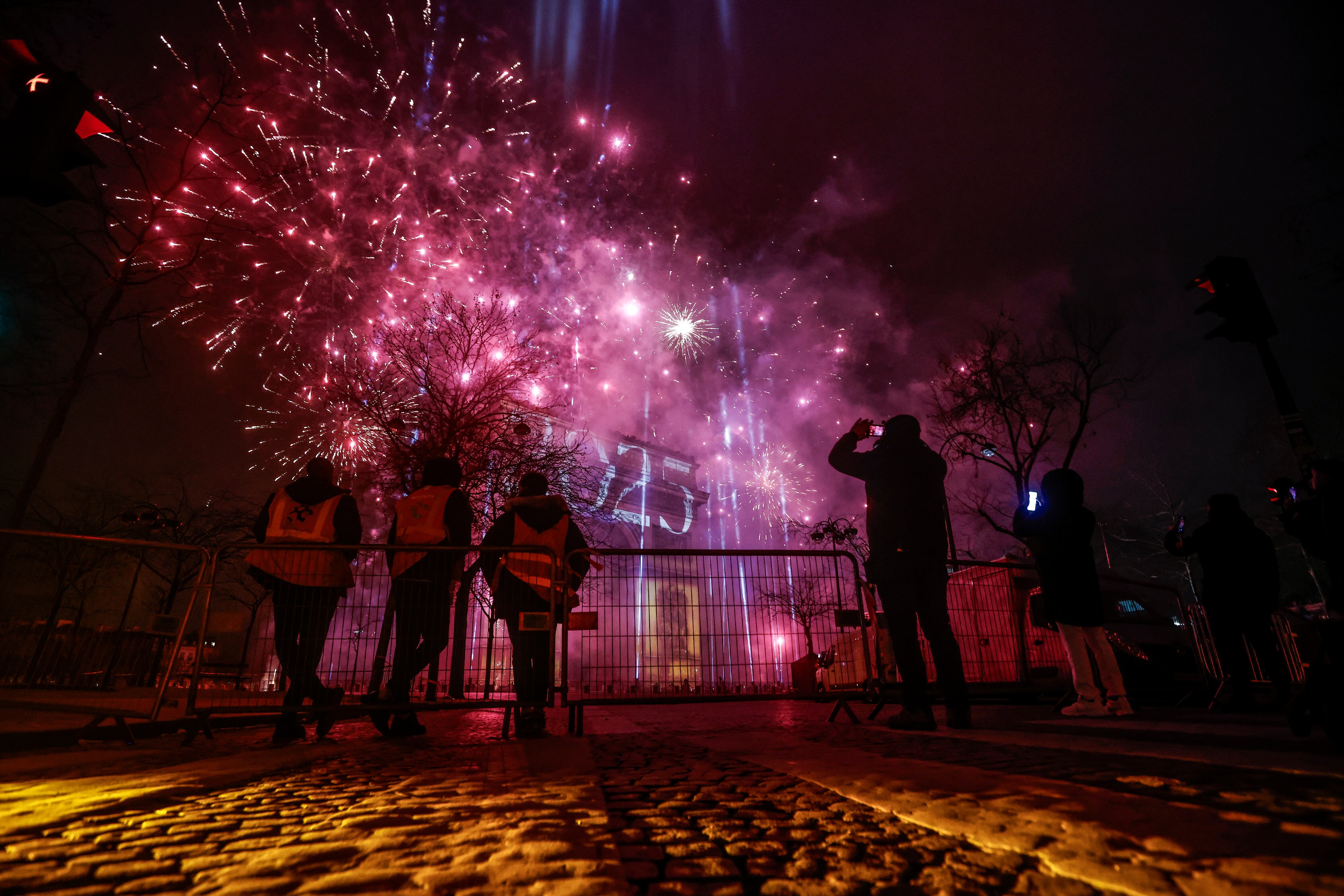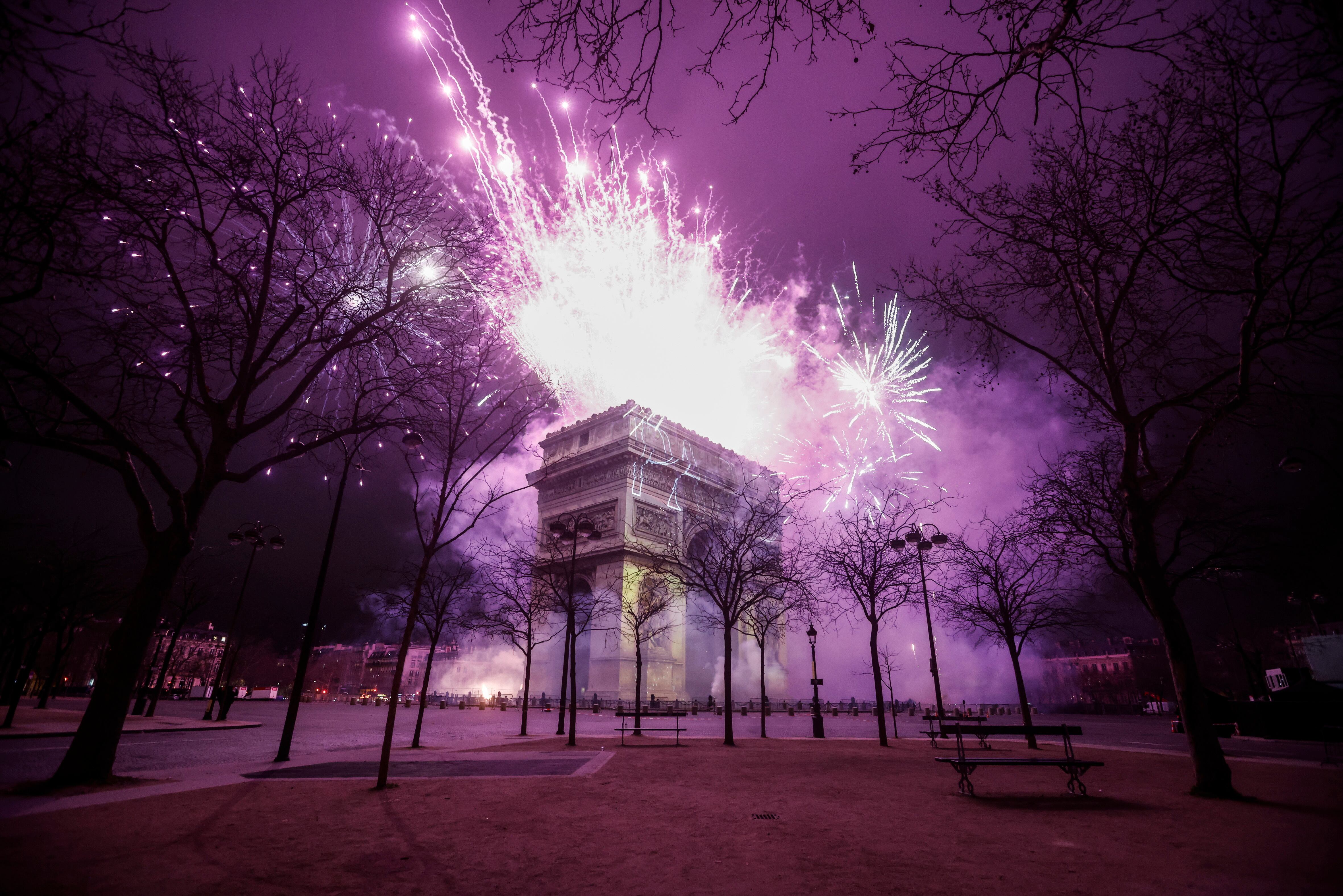 Paris (France), 31/12/2024.- Fireworks illuminate the sky over the The Arc of Triomphe during the New Year's celebrations in Paris, France, 01 January 2025. (Francia) EFE/EPA/YOAN VALAT / YOAN VALAT
