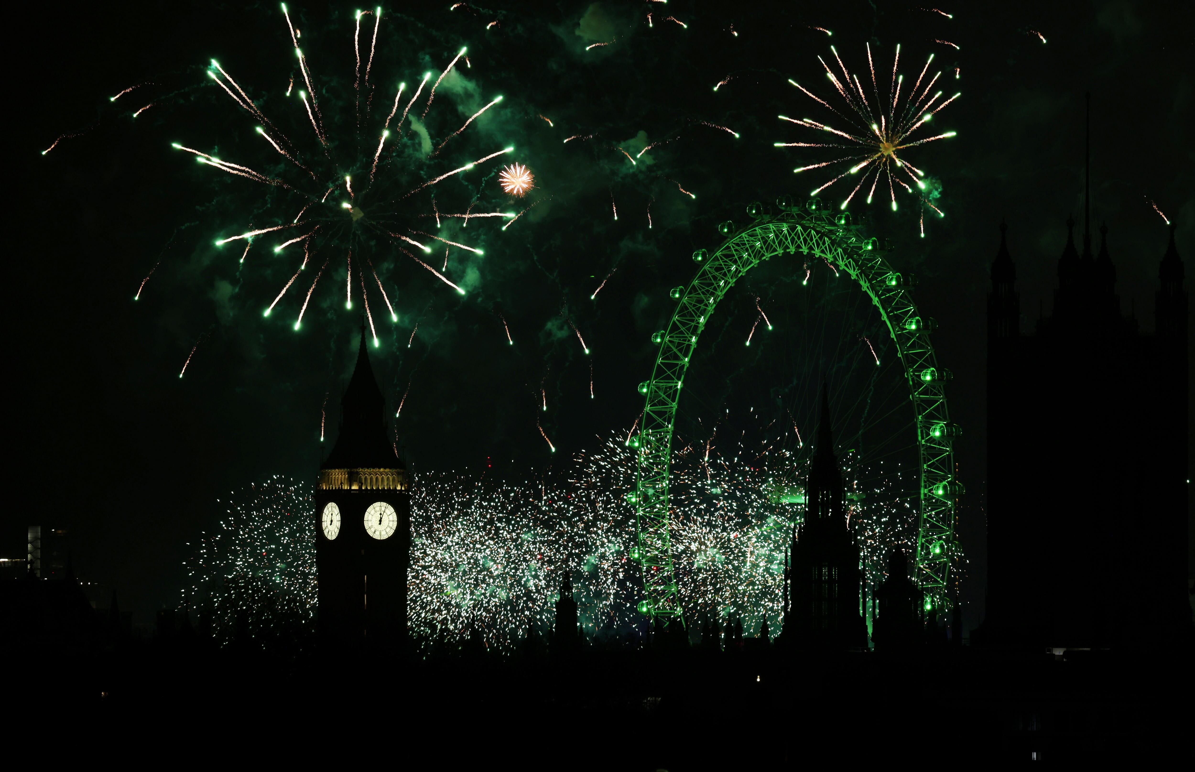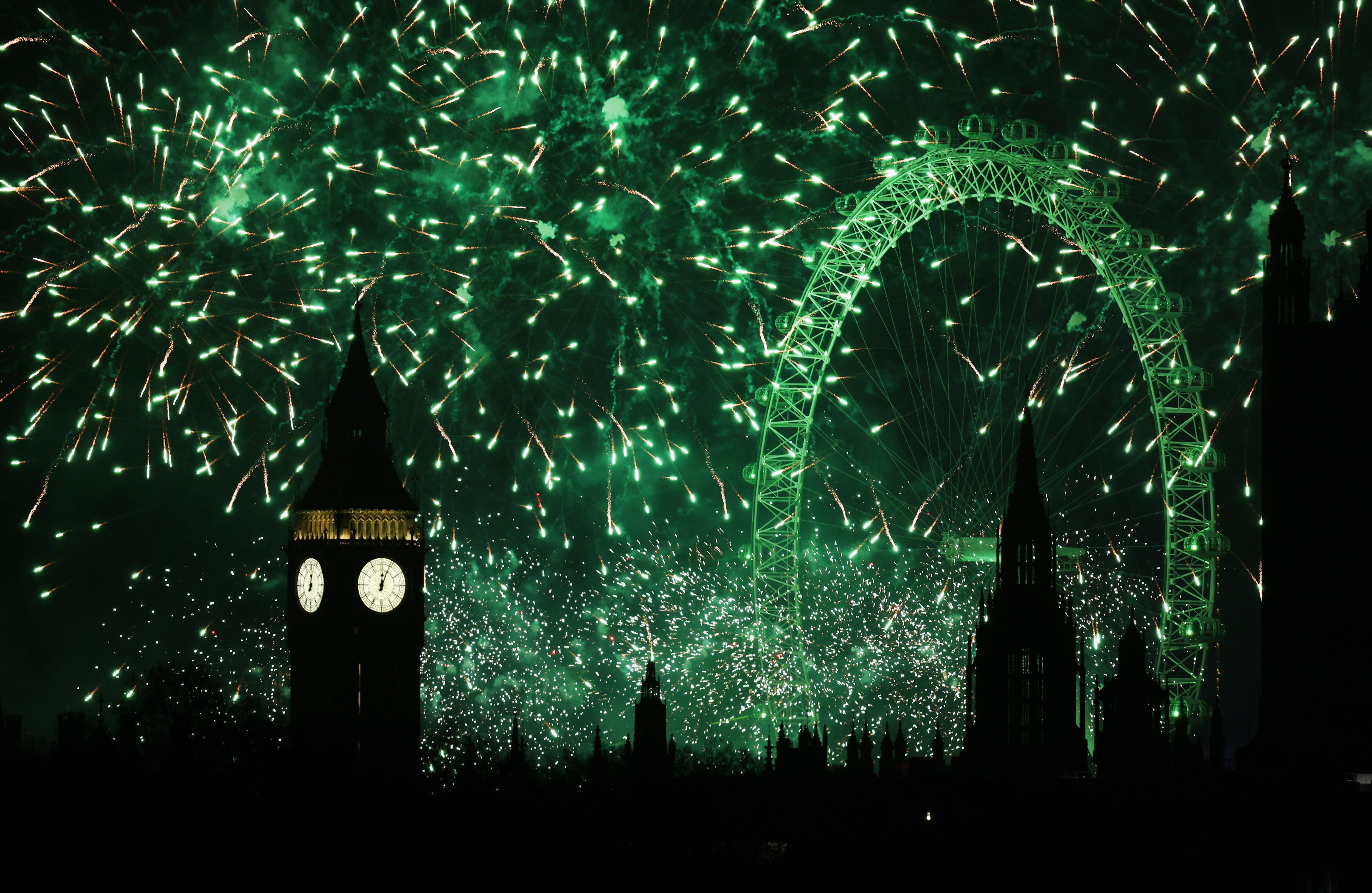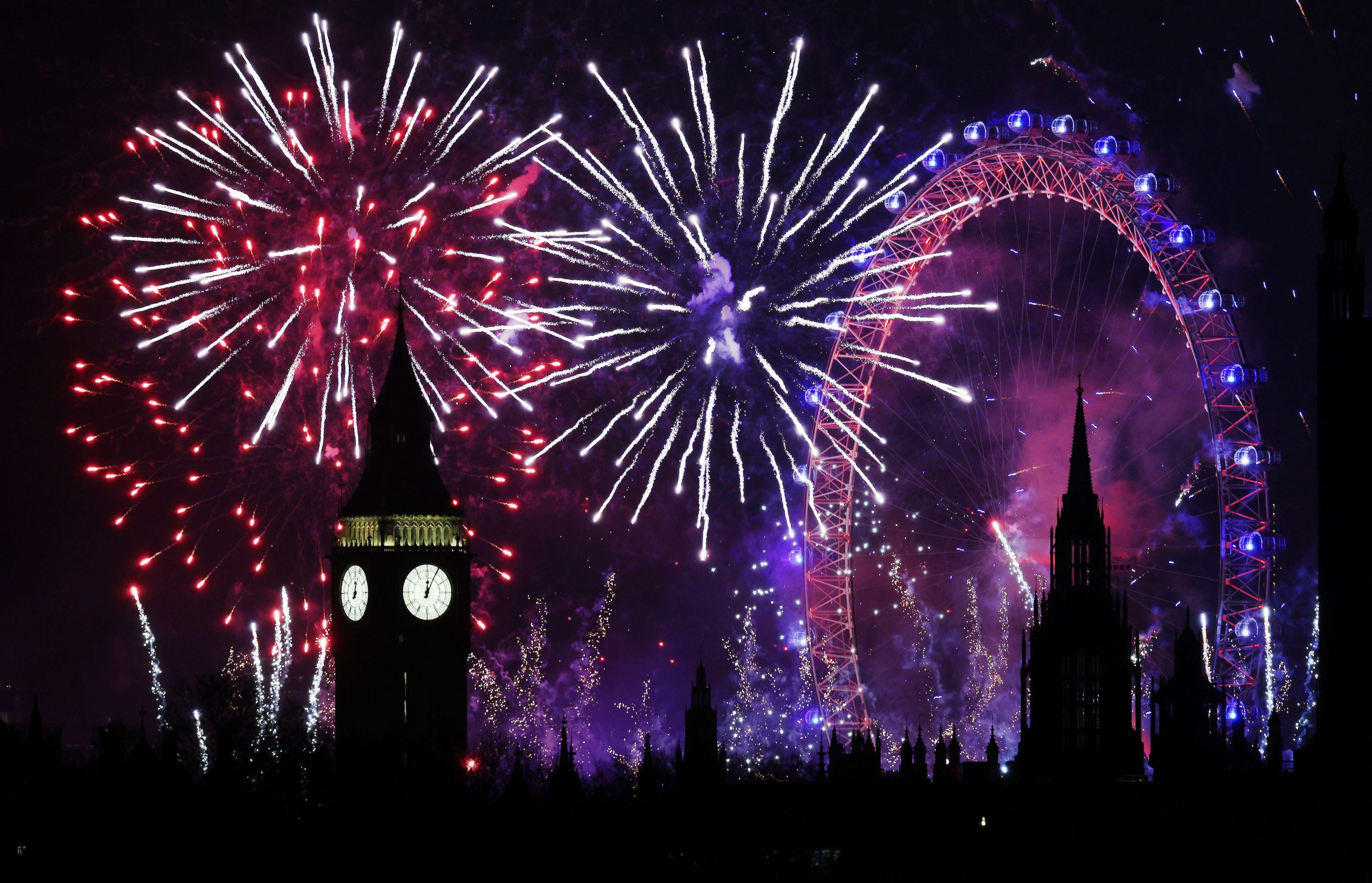 London (United Kingdom), 01/01/2025.- A fireworks display erupts over London during New Year's celebrations in London, Britain, 01 January 2025. London'Äôs New Years Eve fireworks display went ahead despite New Year celebrations being cancelled in Edinburgh and Blackpool due to strong winds. (Reino Unido, Edimburgo, Londres) EFE/EPA/ANDY RAIN / ANDY RAIN (EFE)