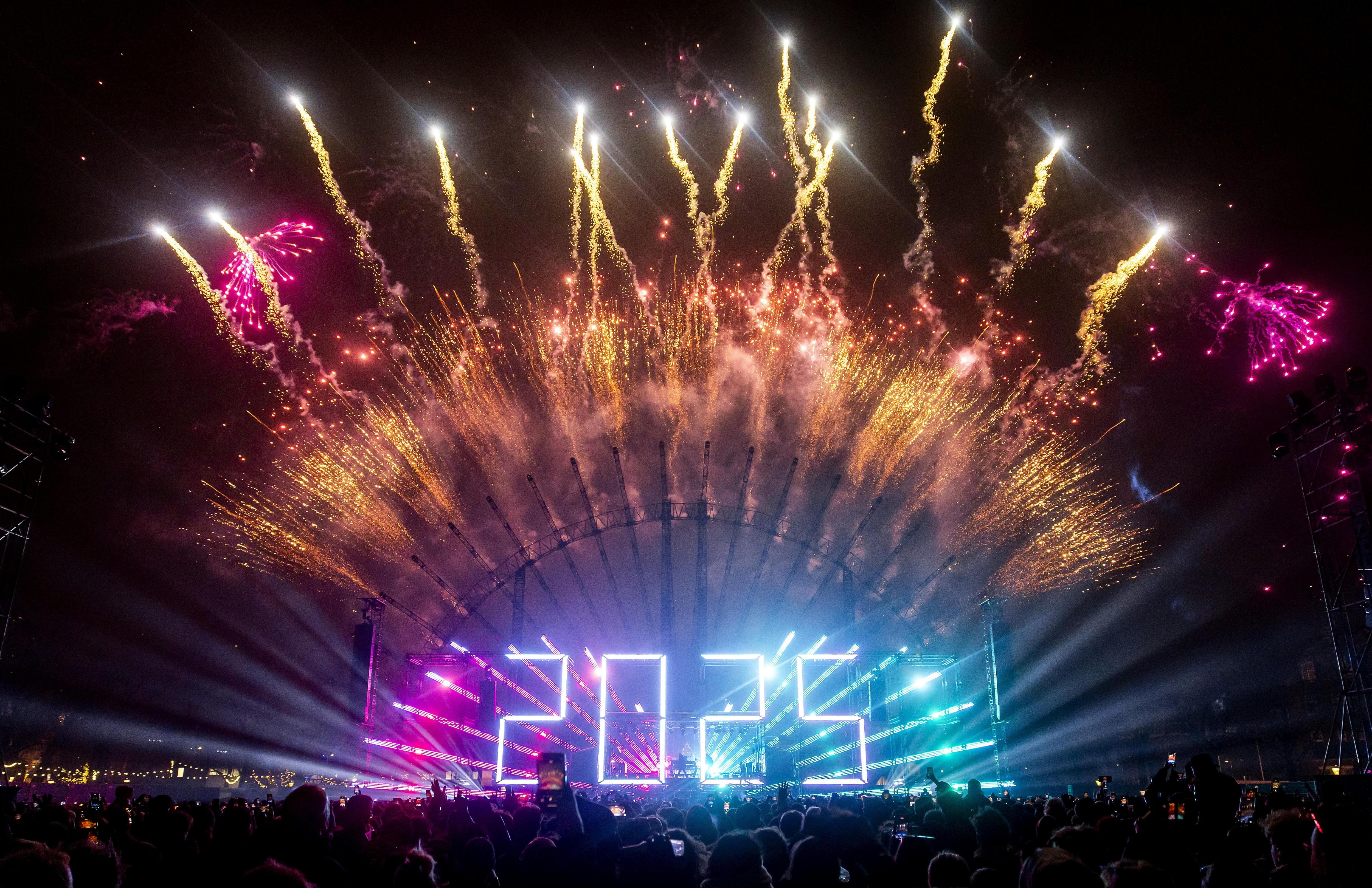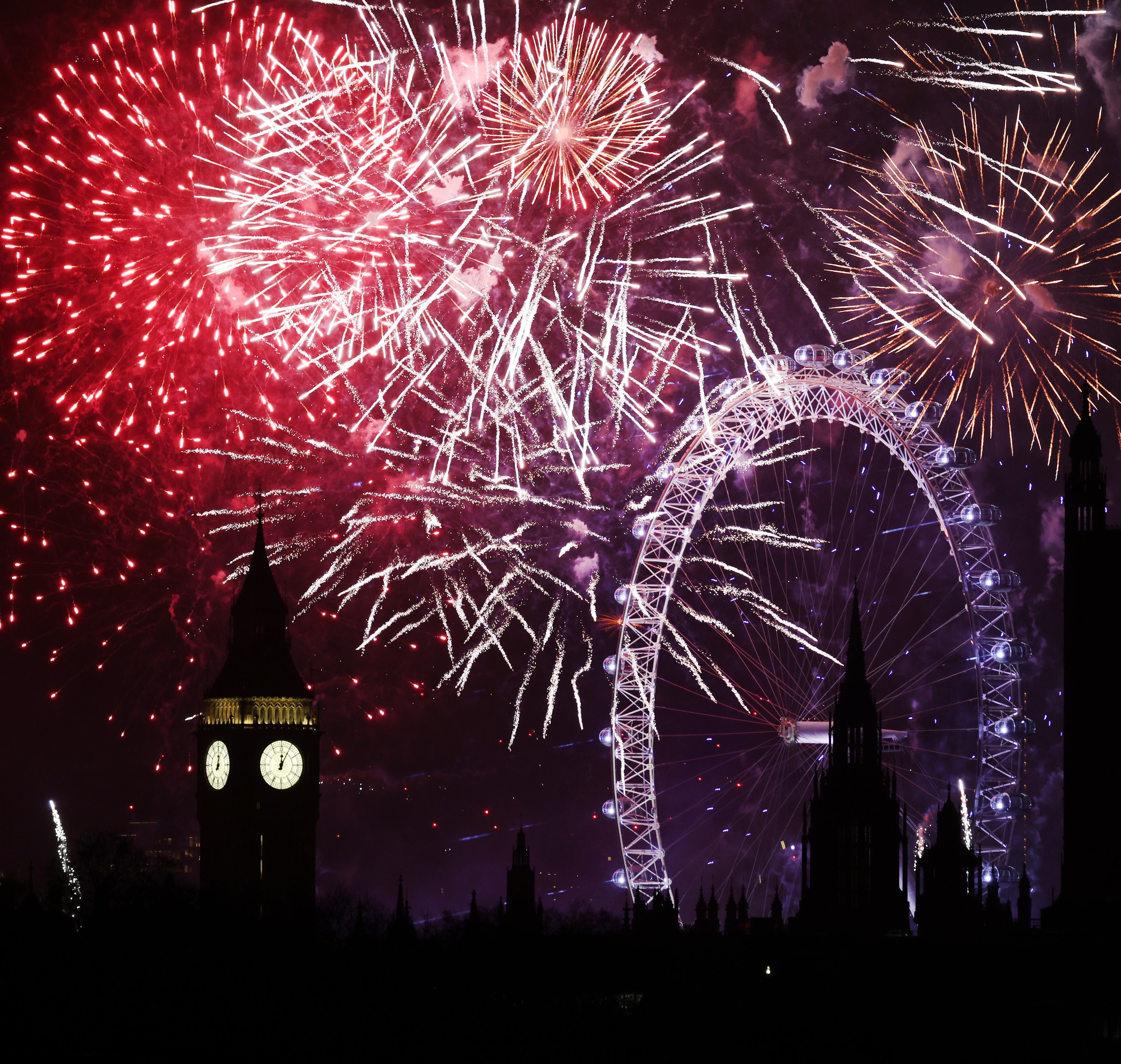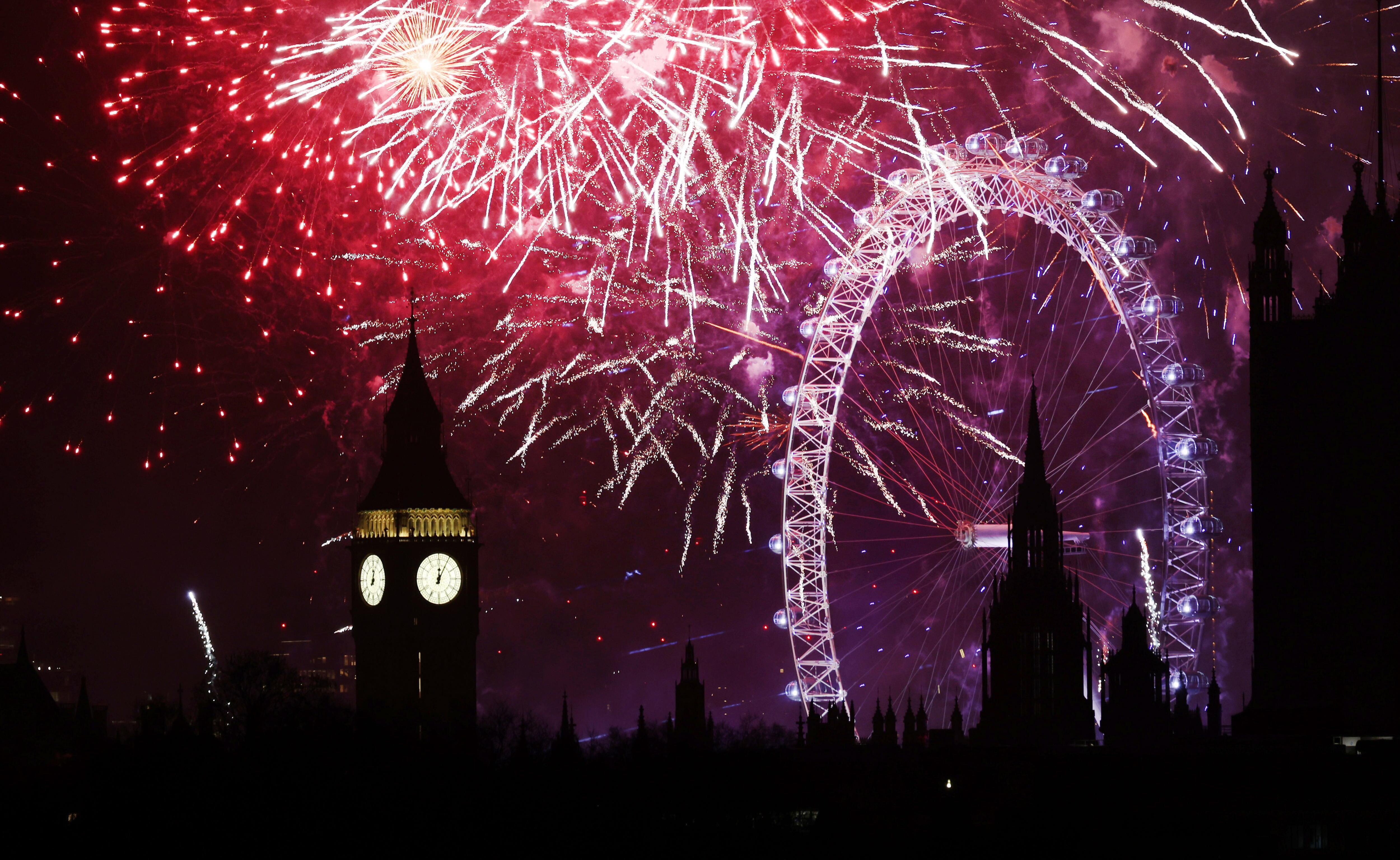 London (United Kingdom), 01/01/2025.- A fireworks display erupts over London during New Year's celebrations in London, Britain, 01 January 2025. London'Äôs New Years Eve fireworks display went ahead despite New Year celebrations being cancelled in Edinburgh and Blackpool due to strong winds. (Reino Unido, Edimburgo, Londres) EFE/EPA/ANDY RAIN / ANDY RAIN (EFE)
