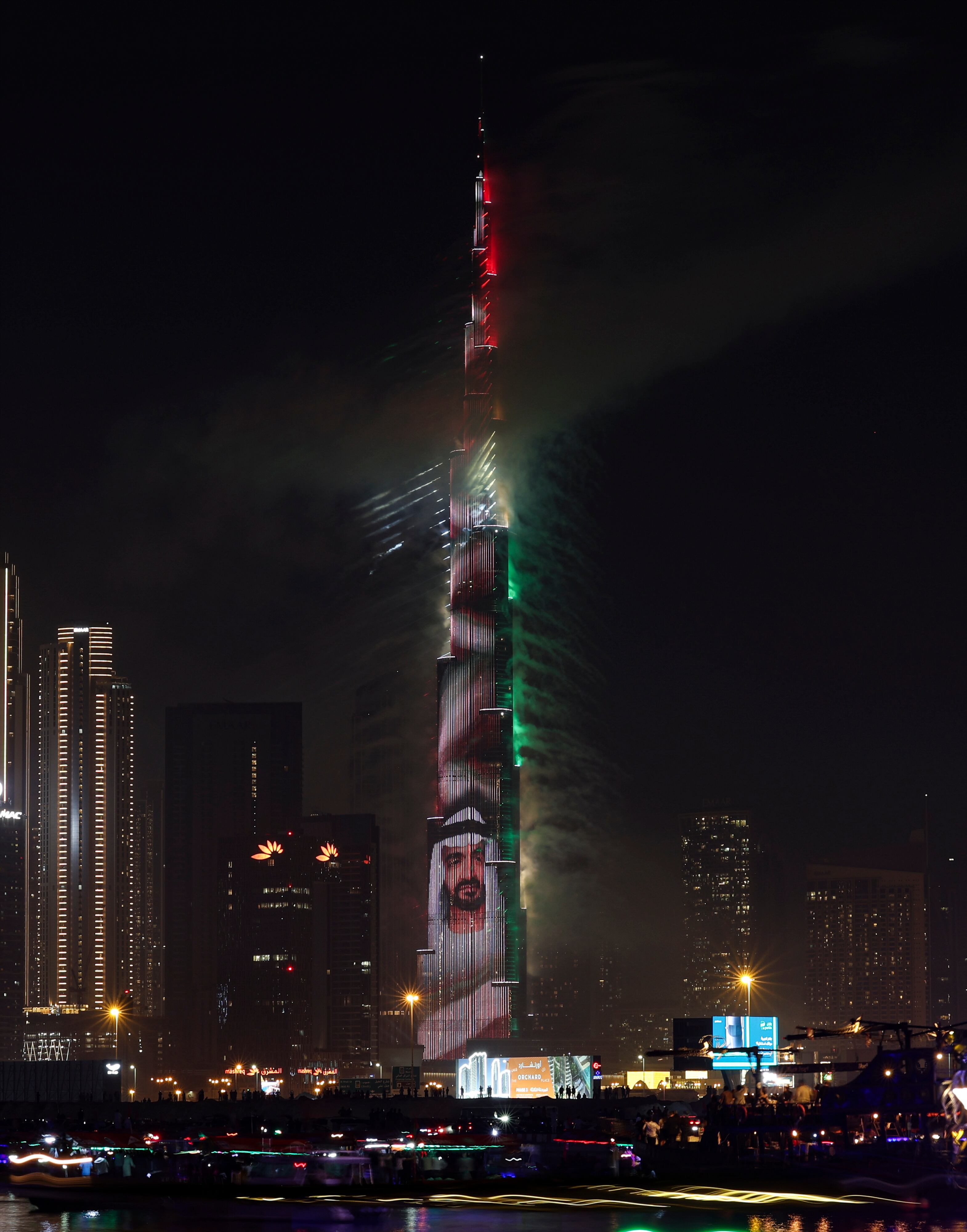 Dubai (United Arab Emirates), 31/12/2024.- Fireworks illuminate the sky from Burj Khalifa, the tallest building in the world with portrait of Sheikh Mohamed bin Zayed Al Nahyan, President of the United Arab Emirates and Ruler of the emirate of Abu Dhabi , during New Year's Eve celebrations in the Gulf emirate of Dubai, United Arab Emirates, 31 December 2024. (Emiratos Árabes Unidos) EFE/EPA/ALI HAIDER / ALI HAIDER