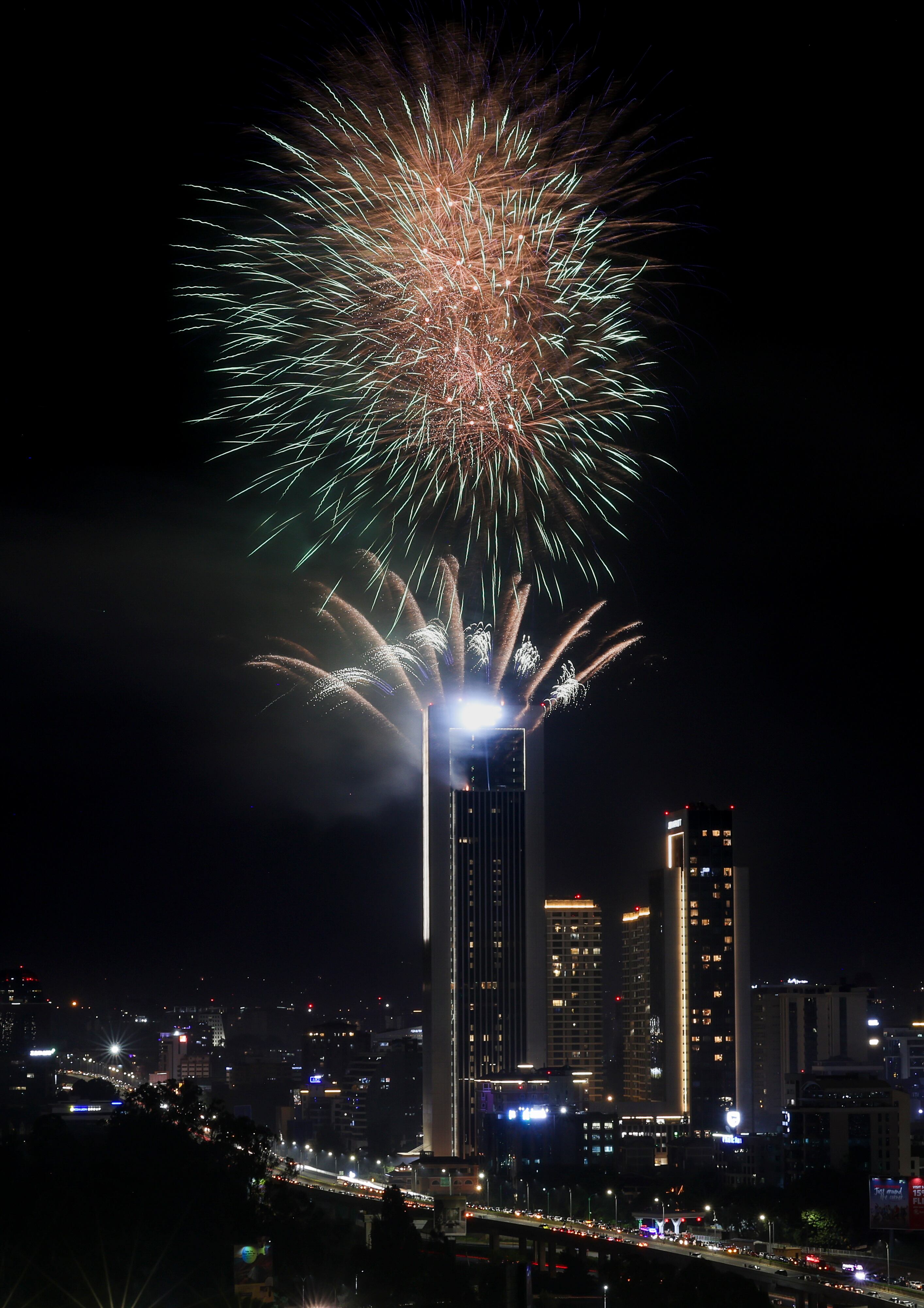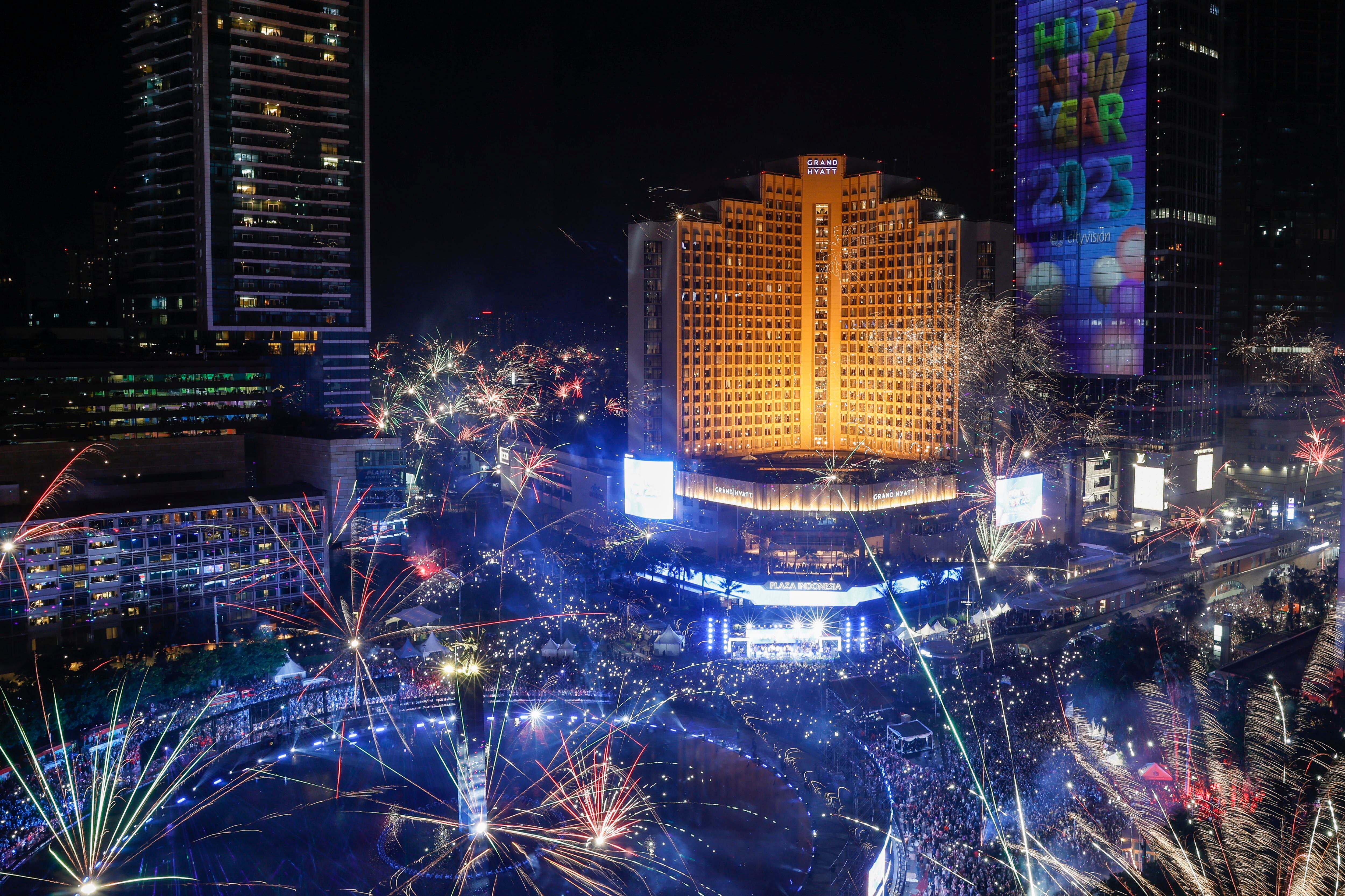 Jakarta (Indonesia), 31/12/2024.- A fireworks display marks the New Year above the Bundaran Hotel Indonesia roundabout in Jakarta, Indonesia, 31 December 2024. EFE/EPA/MAST IRHAM / MAST IRHAM
