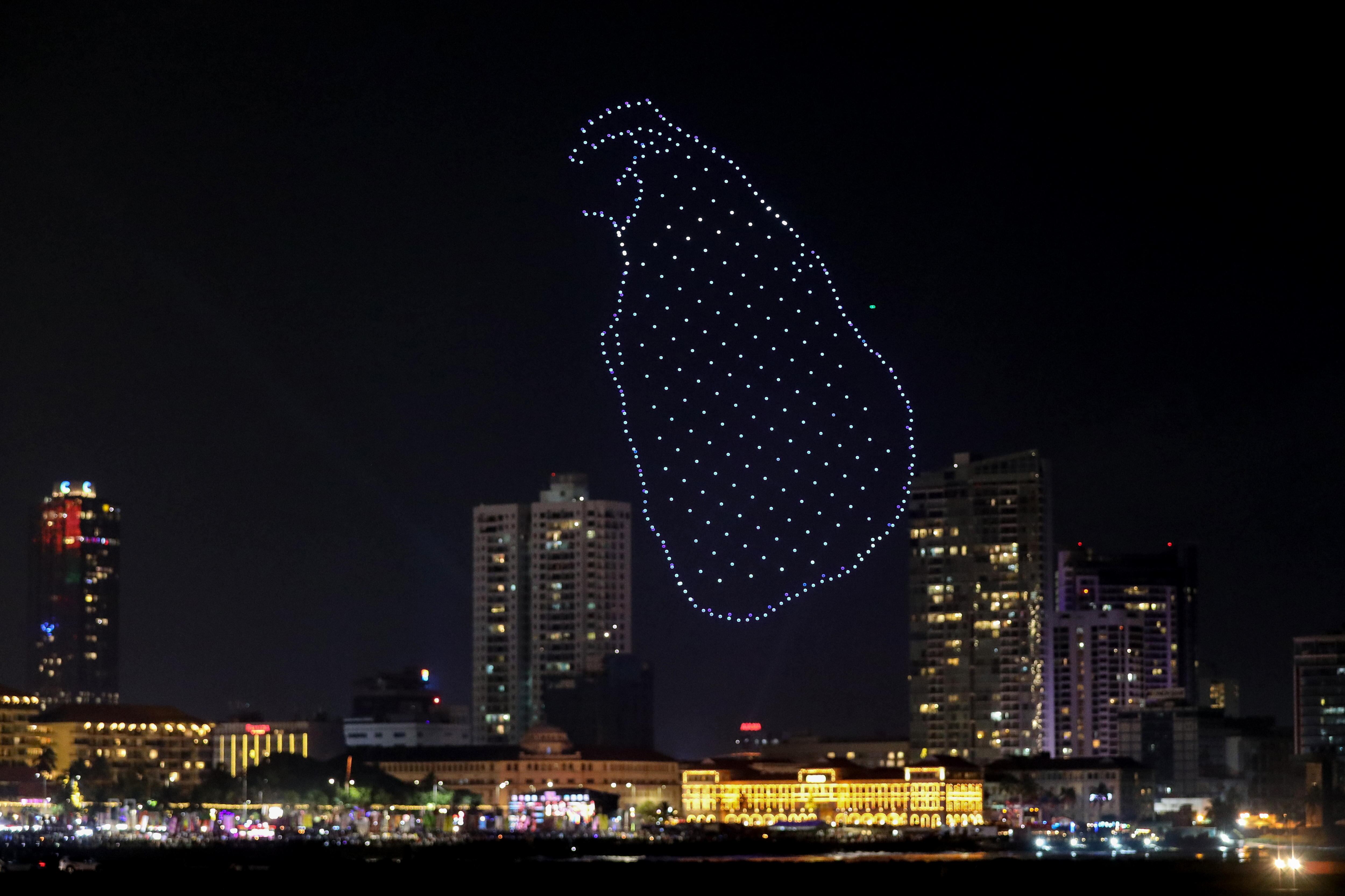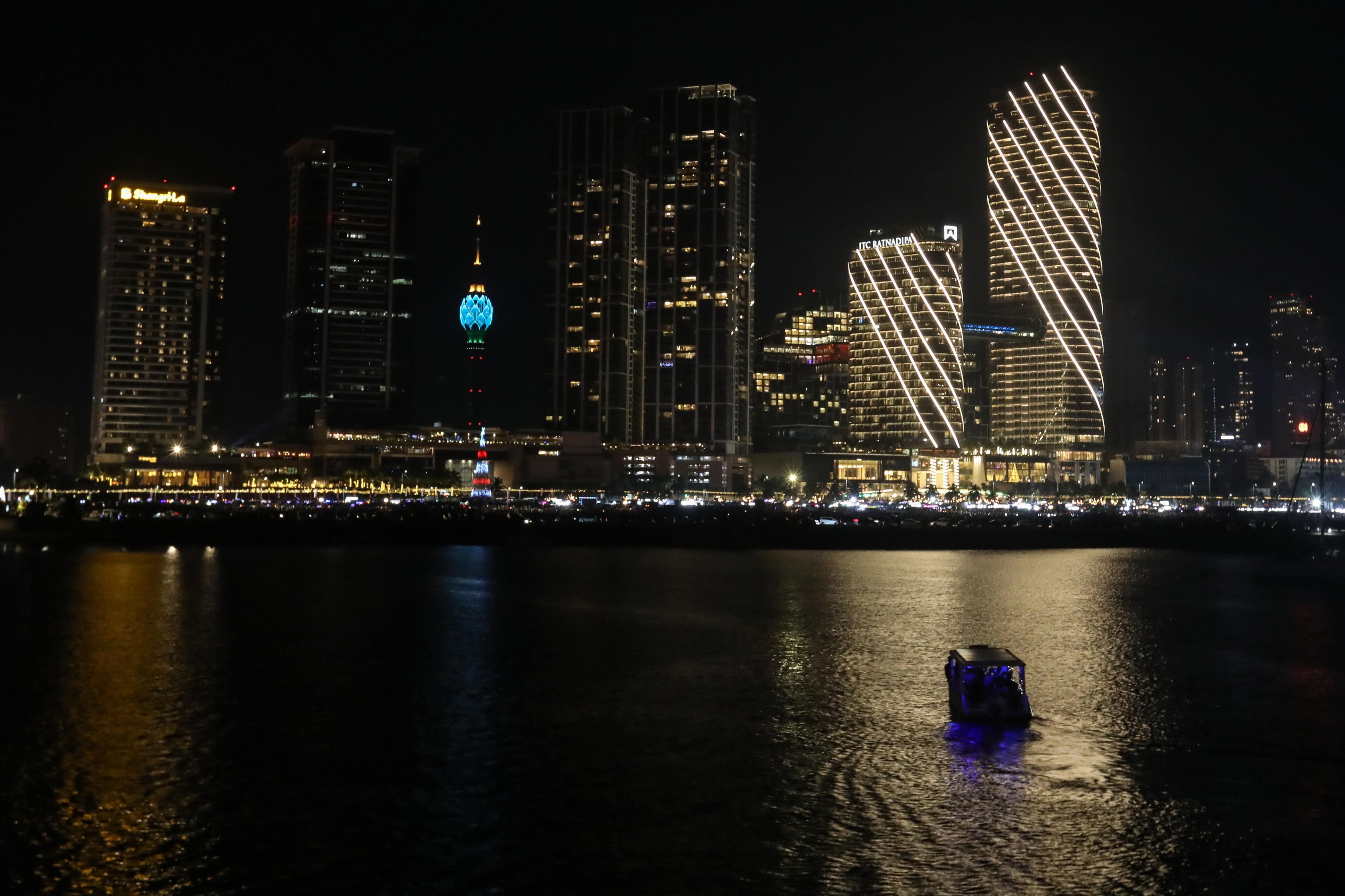 Colombo (Sri Lanka), 31/12/2024.- Fireworks and light effects illuminate the night sky during the 2025 new year's celebrations in capital Colombo, Sri Lanka, 01 January 2025. EFE/EPA/CHAMILA KARUNARATHNE / CHAMILA KARUNARATHNE