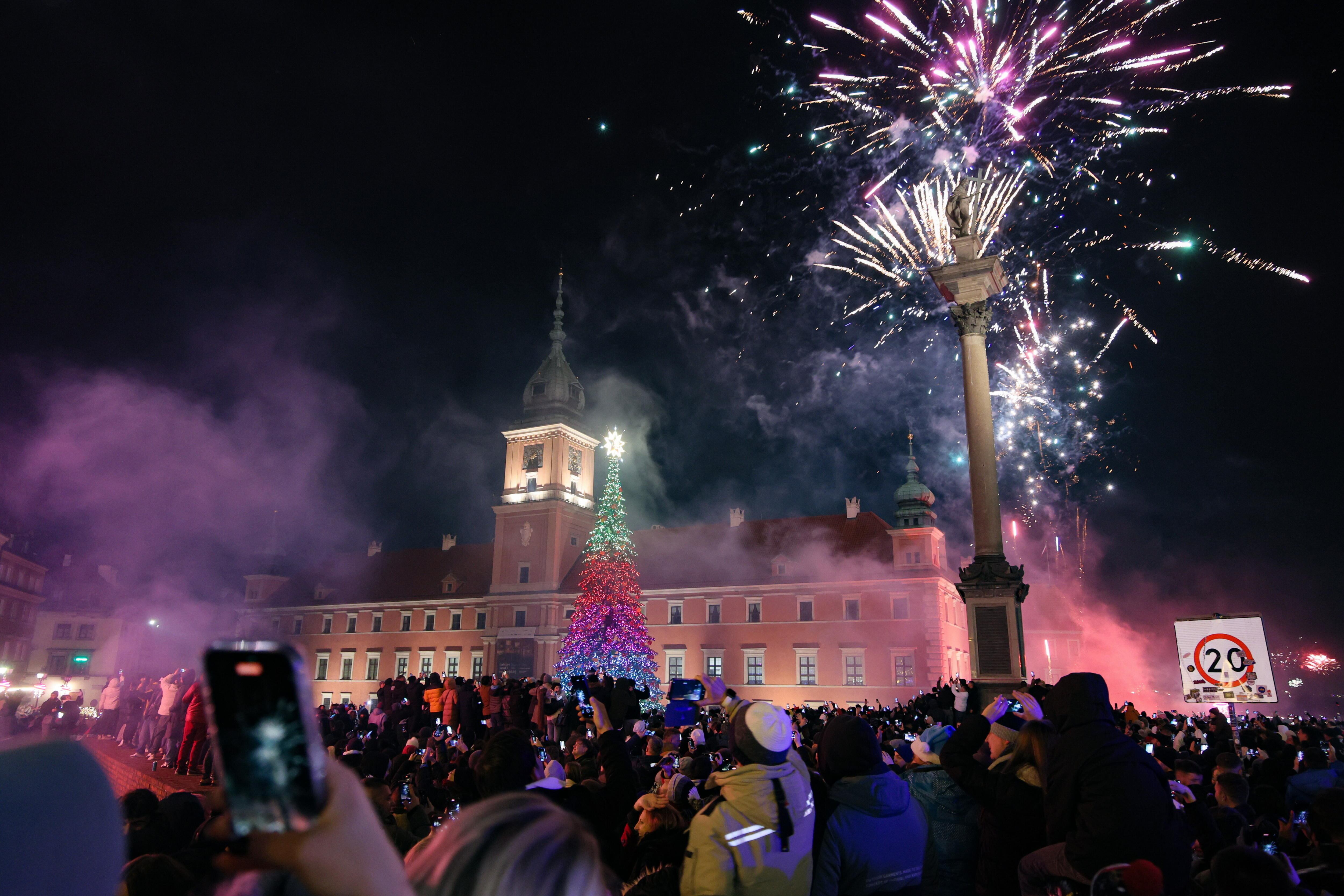 Warsaw (Poland), 01/01/2025.- Residents of the capital and tourists celebrate the arrival of the New Year at Castle Square in Warsaw, Poland, 01 January 2025. (Polonia, Varsovia) EFE/EPA/Rafal Guz POLAND OUT / Rafal Guz