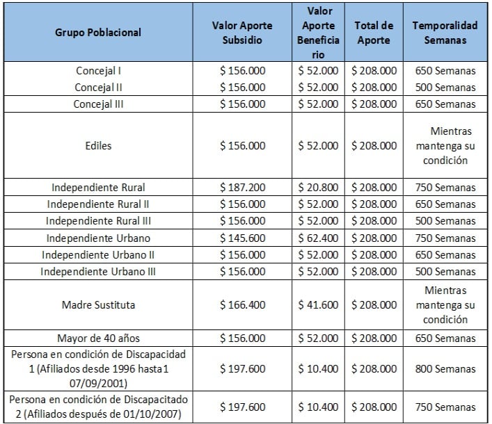 “En este programa los beneficiarios deben aportar un porcentaje del monto total de cotización, que generalmente oscila entre el 5% y el 30%, dependiendo del grupo poblacional al que pertenezcan”, reitera el portal digital del Fondo, que muestra una tabla sobre la temporalidad del apoyo: