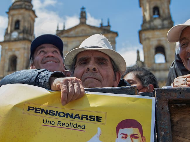 Ancianos asisten a una ceremonia en la que el presidente colombiano Gustavo Petro firmó el proyecto de ley de reforma de pensiones en la Plaza de Bolívar en Bogotá el 16 de julio de 2024. (Alejandro Martínez/AFP vía Getty Images) / ALEJANDRO MARTINEZ