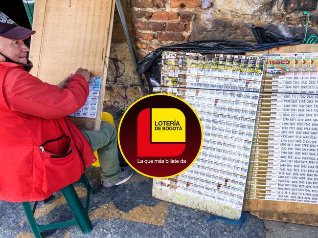 Vendedor callejero de billetes de lotería (Jeffrey Greenberg/Universal Images Group vía Getty Images) y logo de la Lotería de Bogotá (tomado de Facebook)