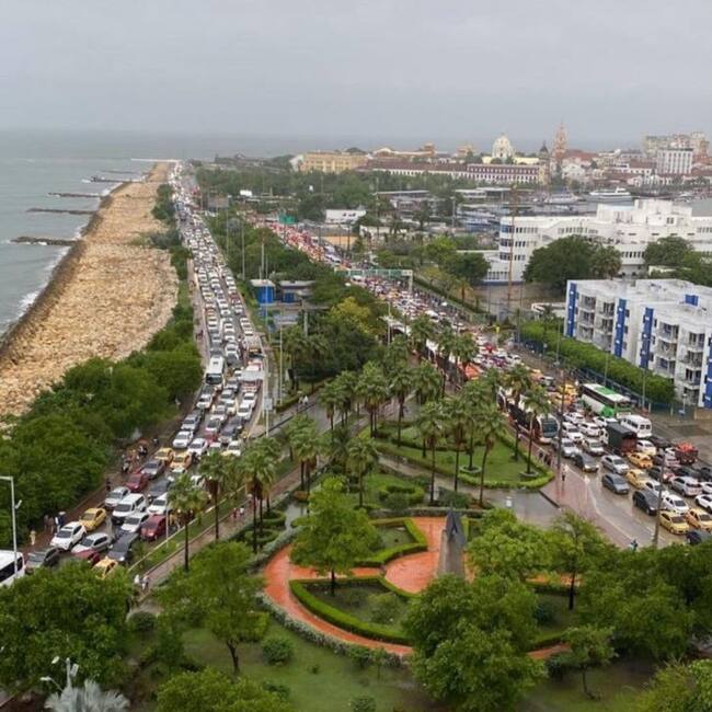 Se registra colapso de la movilidad en varios sectores de la ciudad como El Centro Histórico, Bocagrande, Mall Plaza.