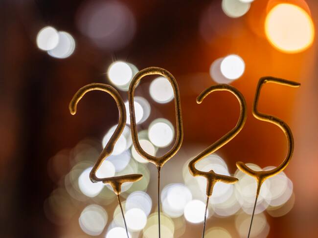 Golden Sparkler as 2025 shine brightly, illuminating a festive atmosphere filled with cheerful bokeh lights in the background / Oleksandra Yagello